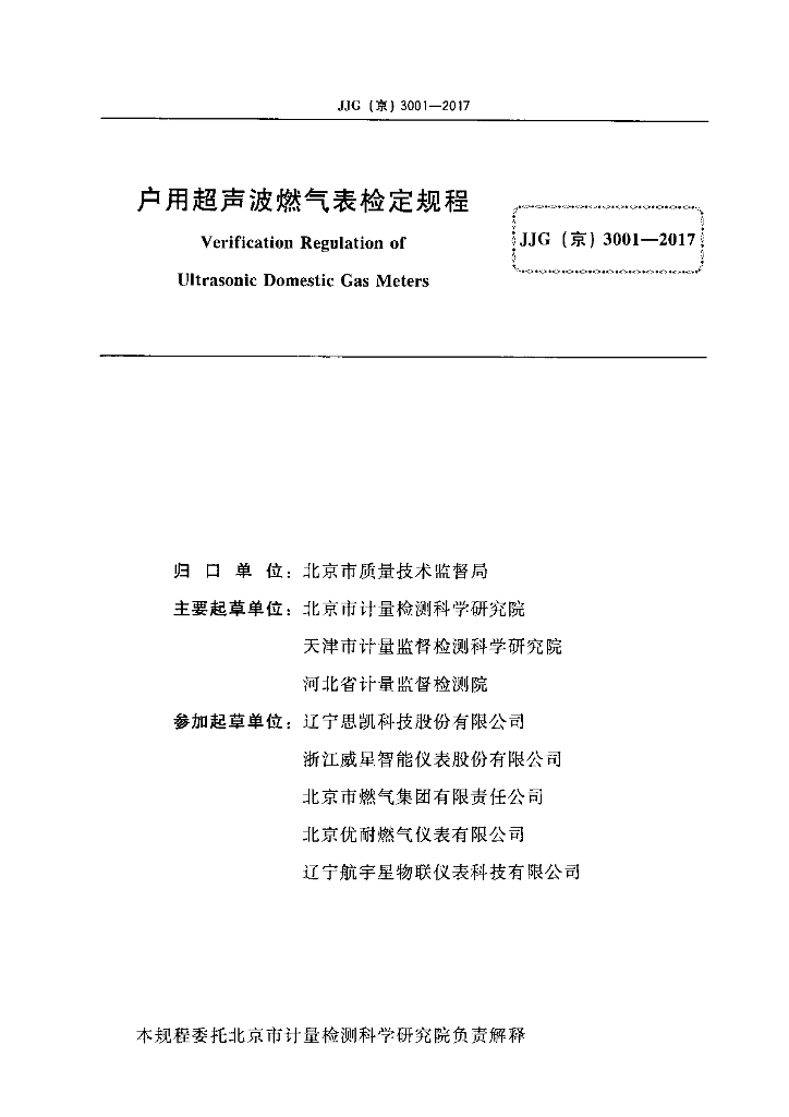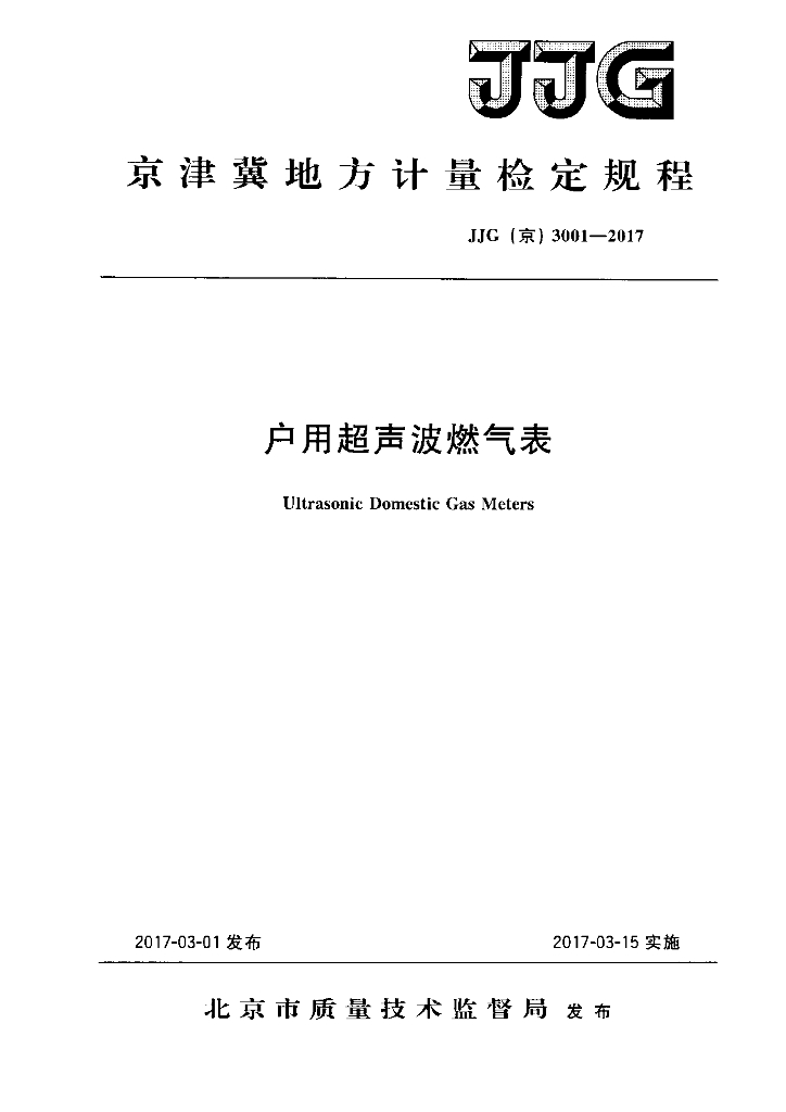 JJG(京)3001-2017 户用超声波燃气表