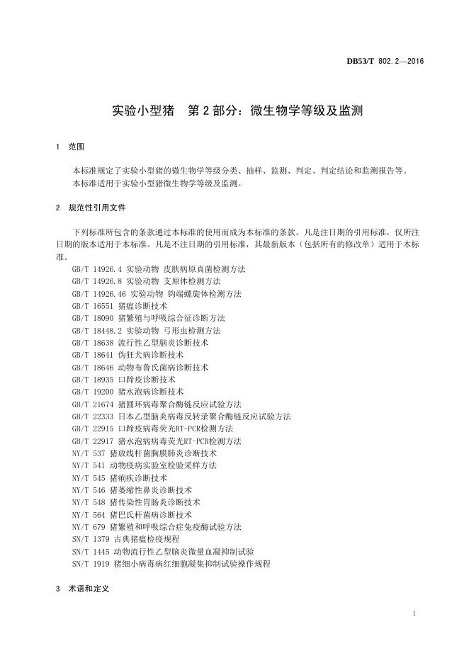 DB53/T 802.2-2016 实验小型猪 第2部分:微生物学等级及监测