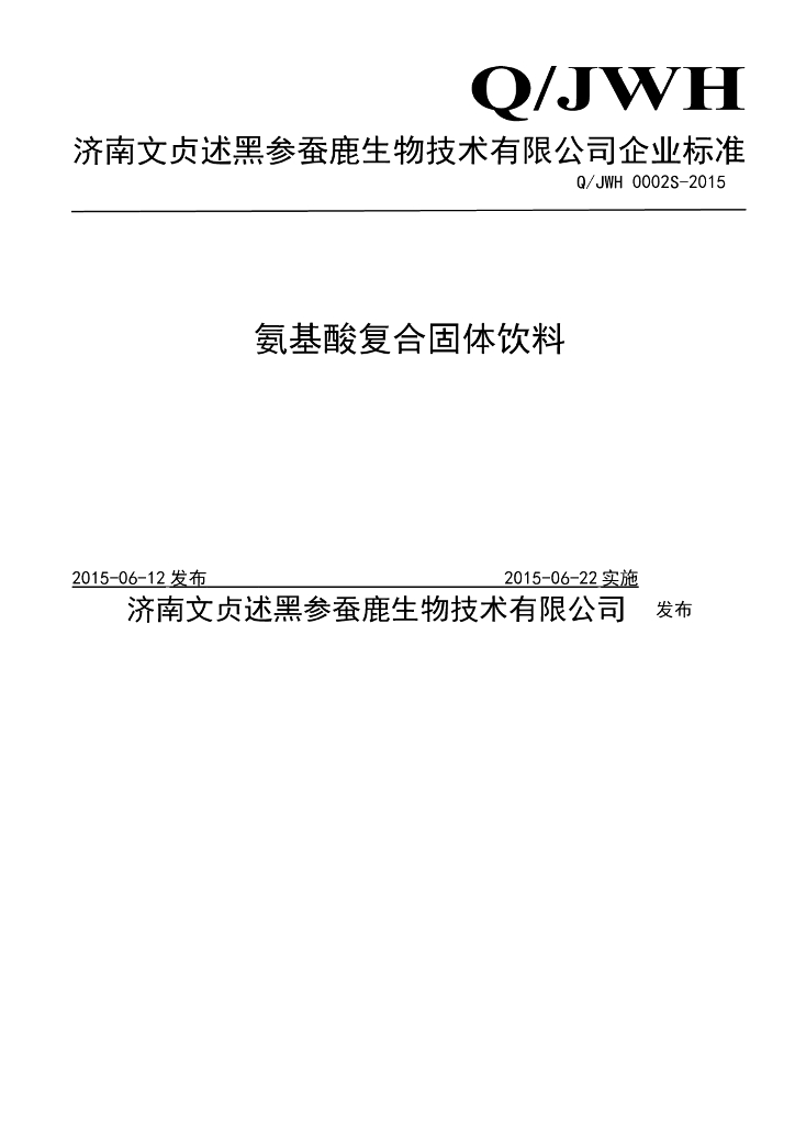 Q/JWH 0002S-2015 济南文贞述黑参蚕鹿生物技术有限公司 氨基酸复合固体饮料