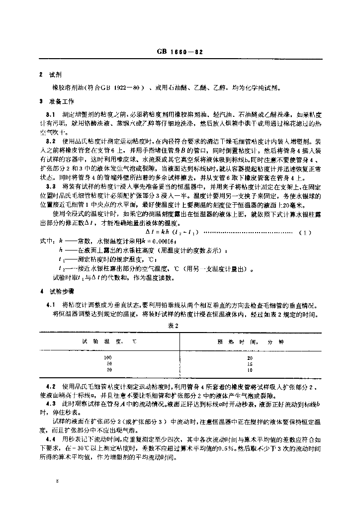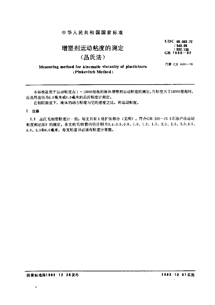 GB/T 1660-1982 增塑剂运动粘度的测定(品氏法)