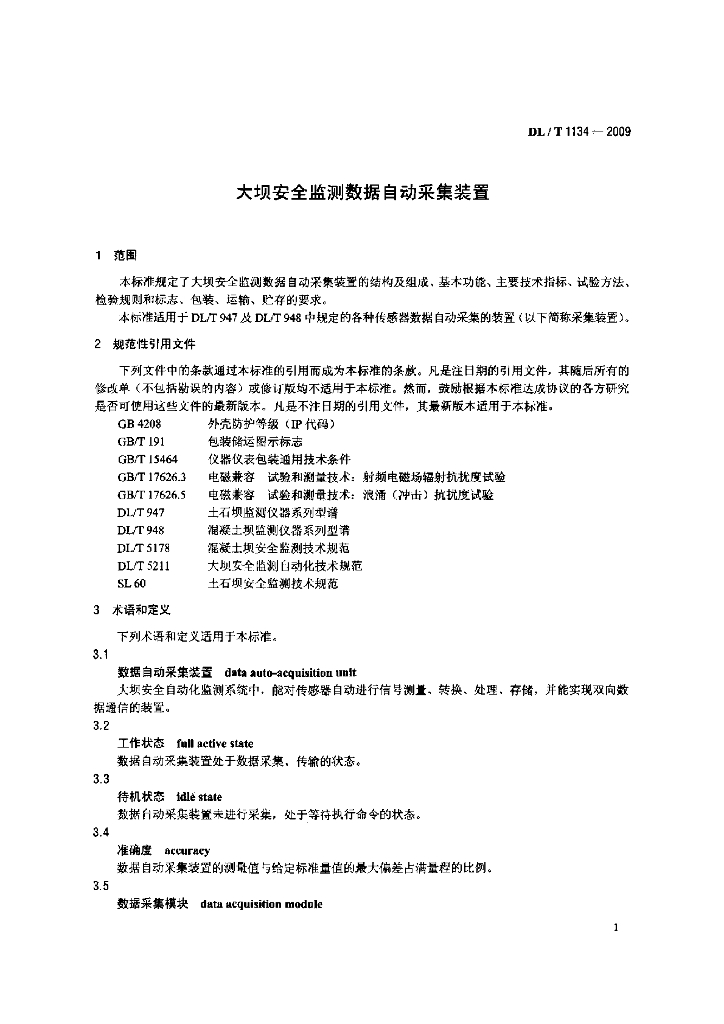 DL/T 1134-2009 大坝安全监测数据自动采集装置