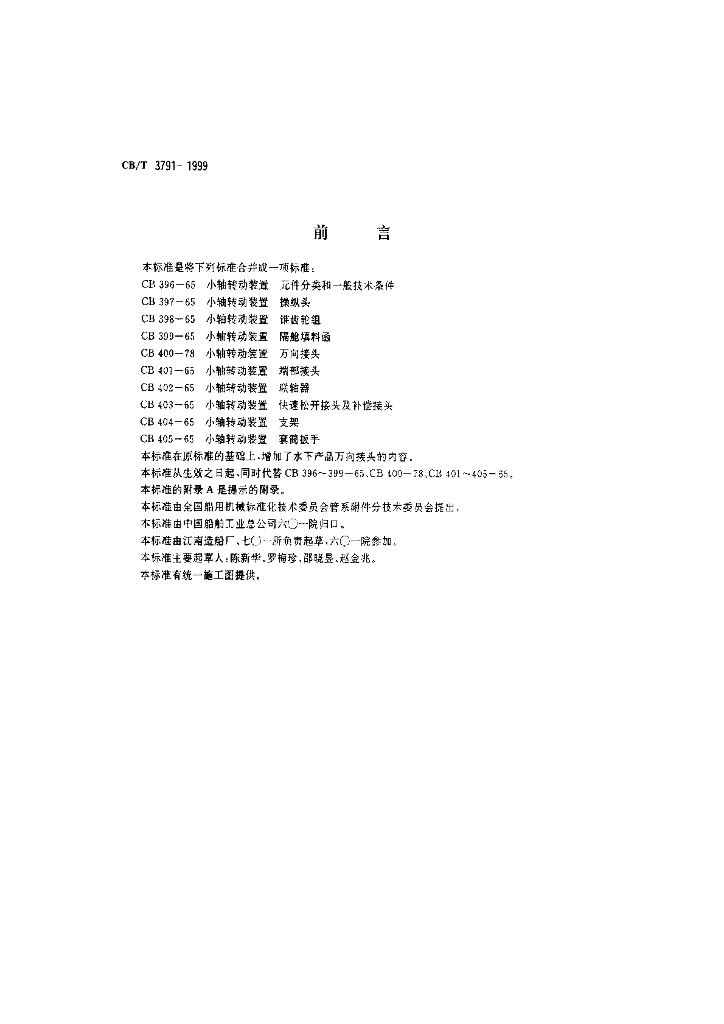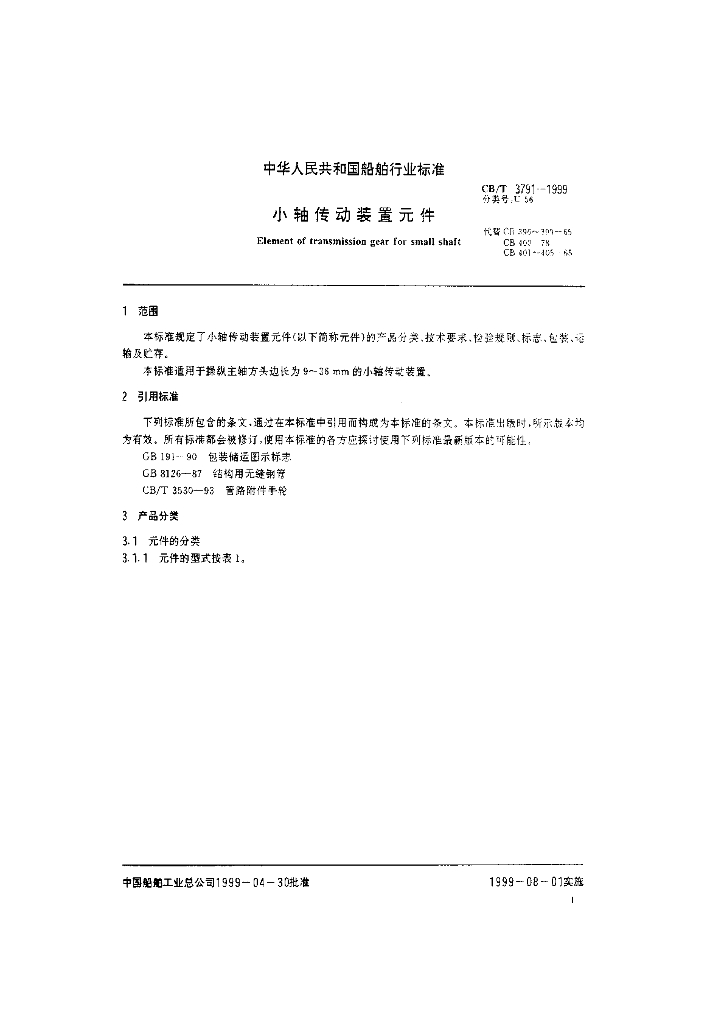 CB/T 3791-1999 小轴传动装置元件