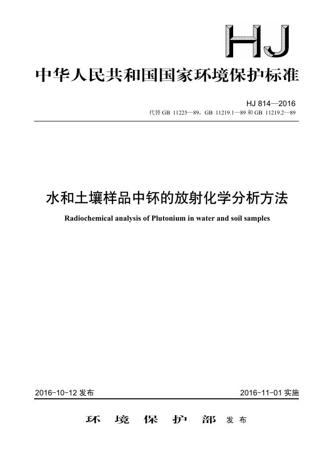 HJ 814-2016 水和土壤样品中钚的放射化学分析方法