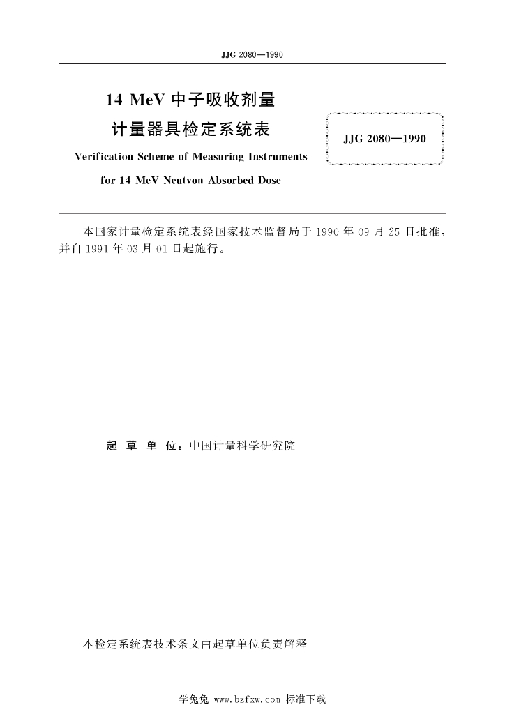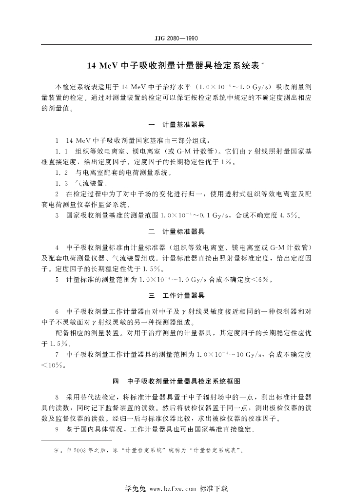 JJG 2080-1990 14MeV中子吸收剂量计量器具