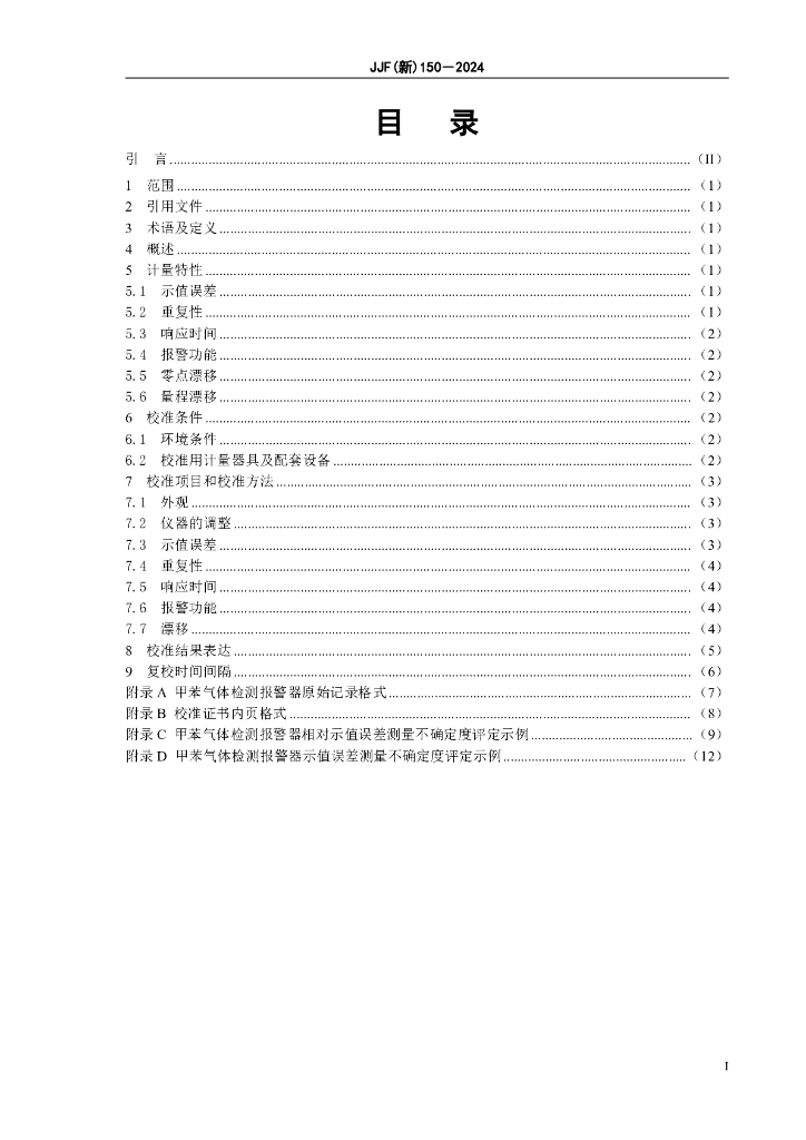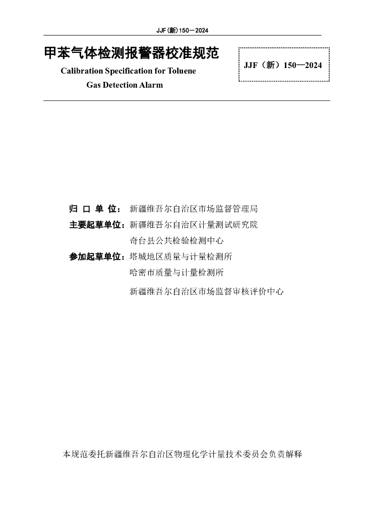 JJF(新)150-2024 甲苯气体检测报警器校准规范