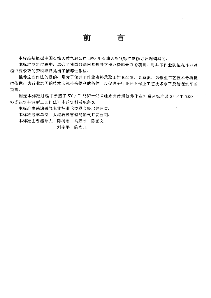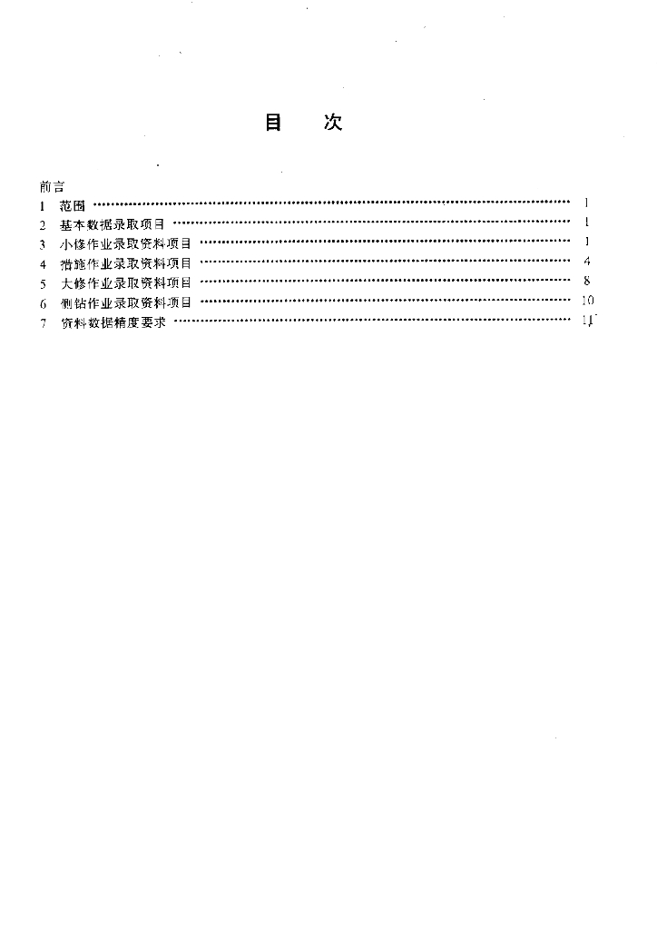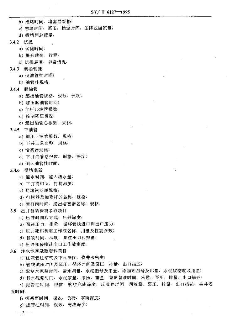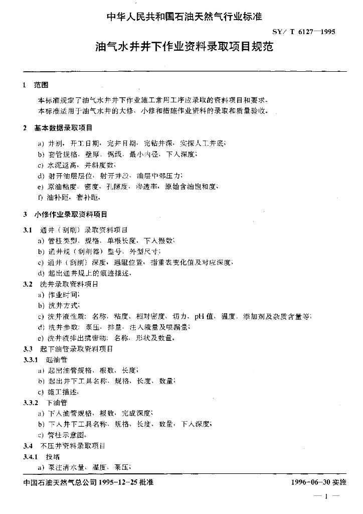 SY/T 6127-1995 油气水井井下作业资料录取项目规范