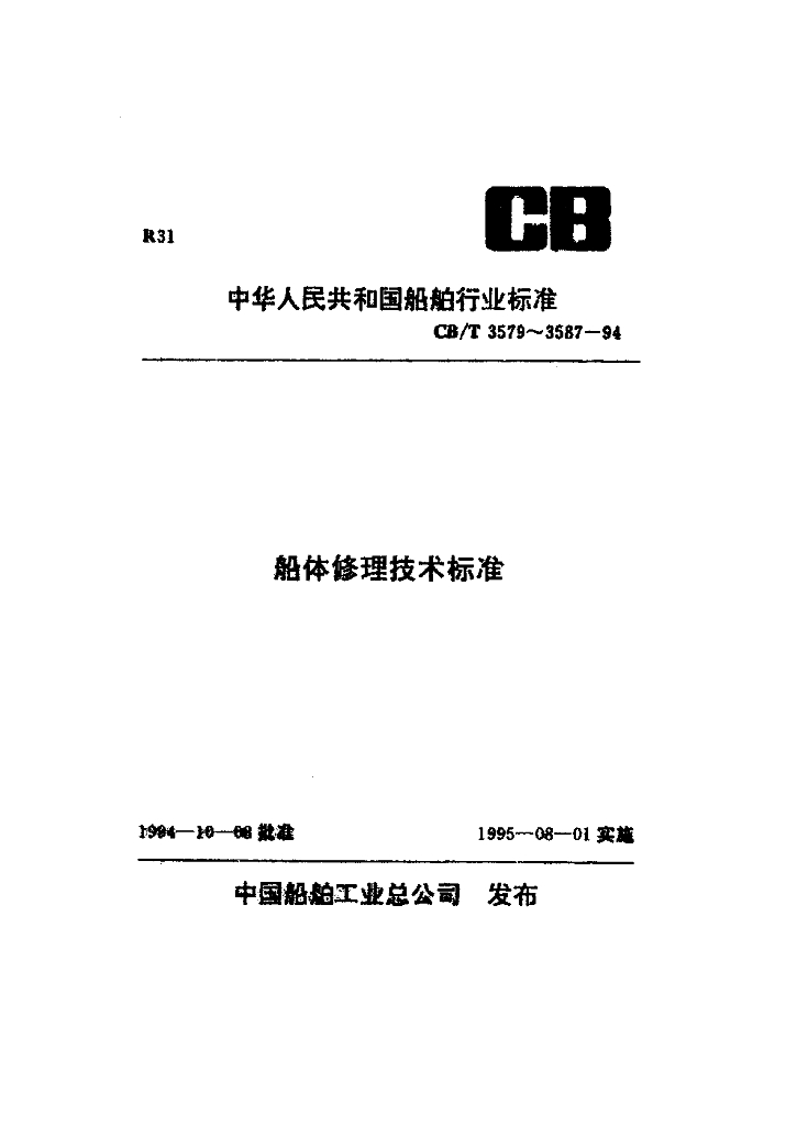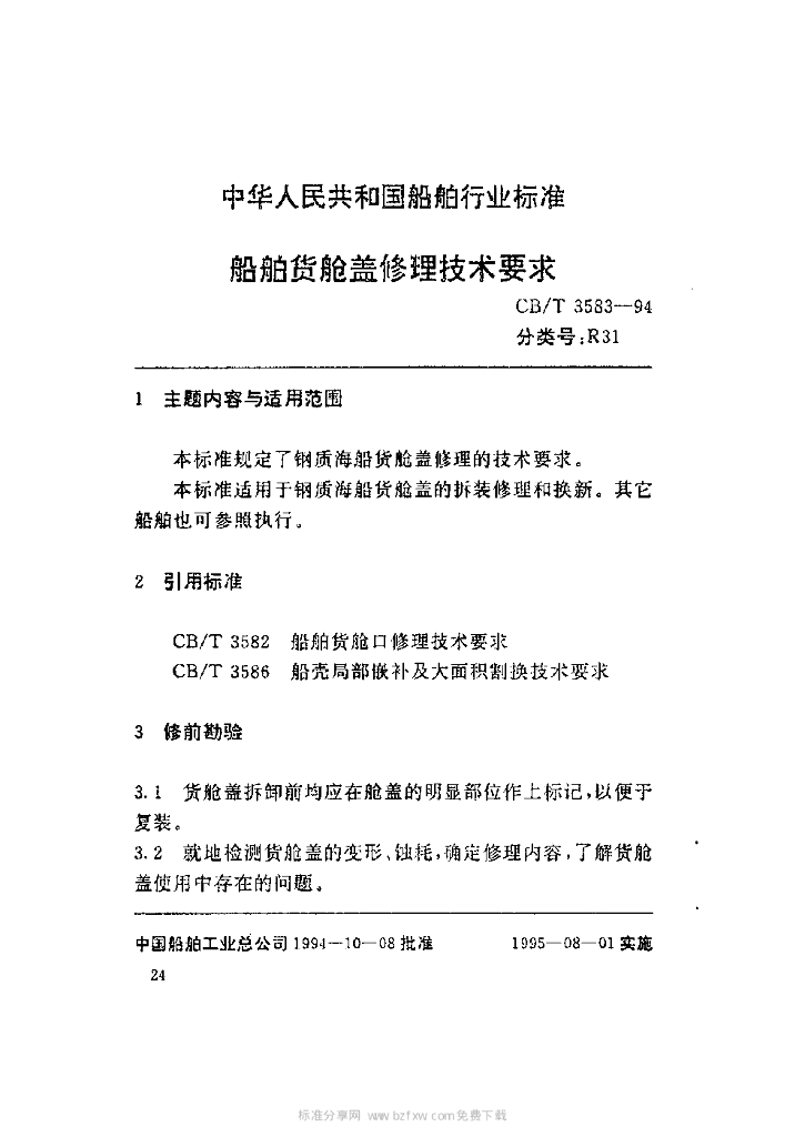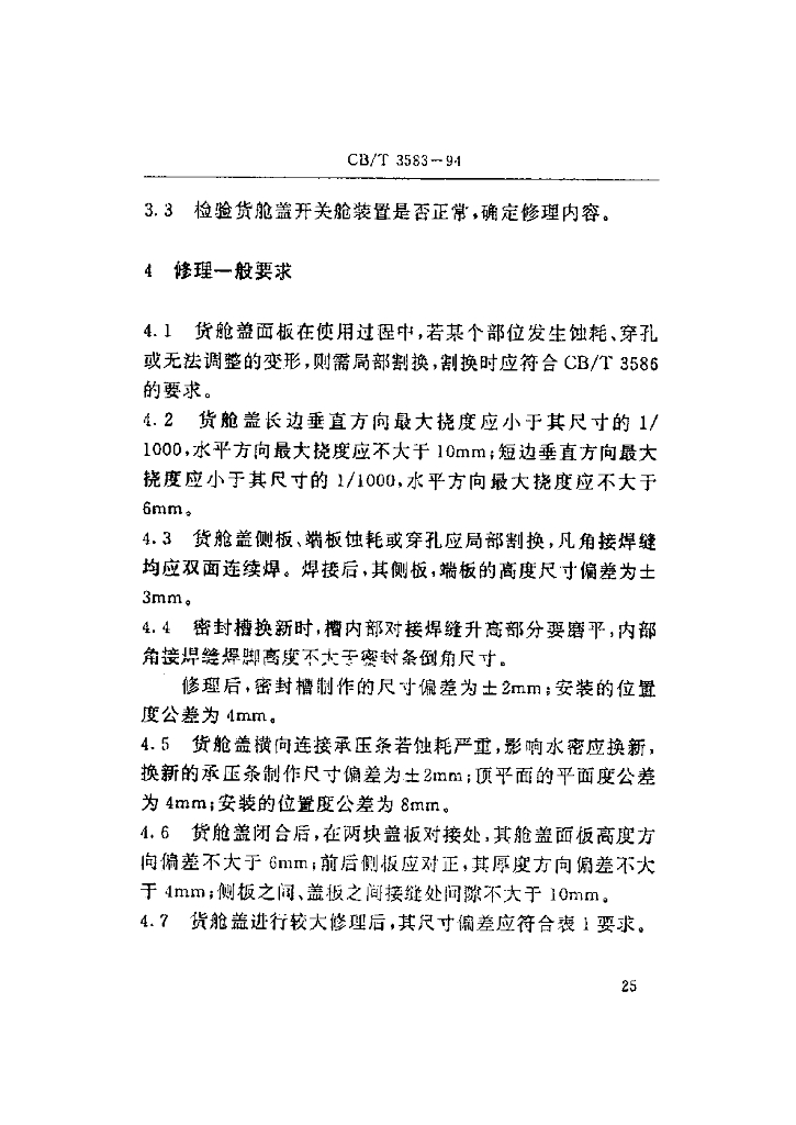 CB/T 3583-1994 船舶货舱盖修理技术要求