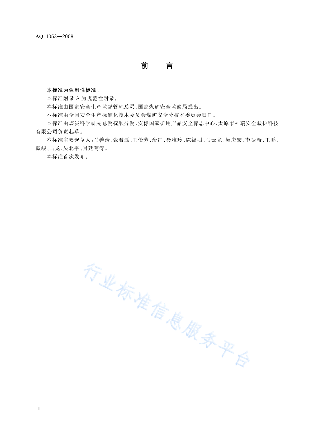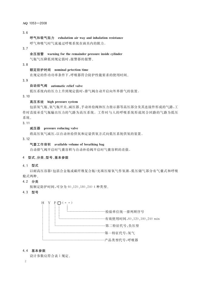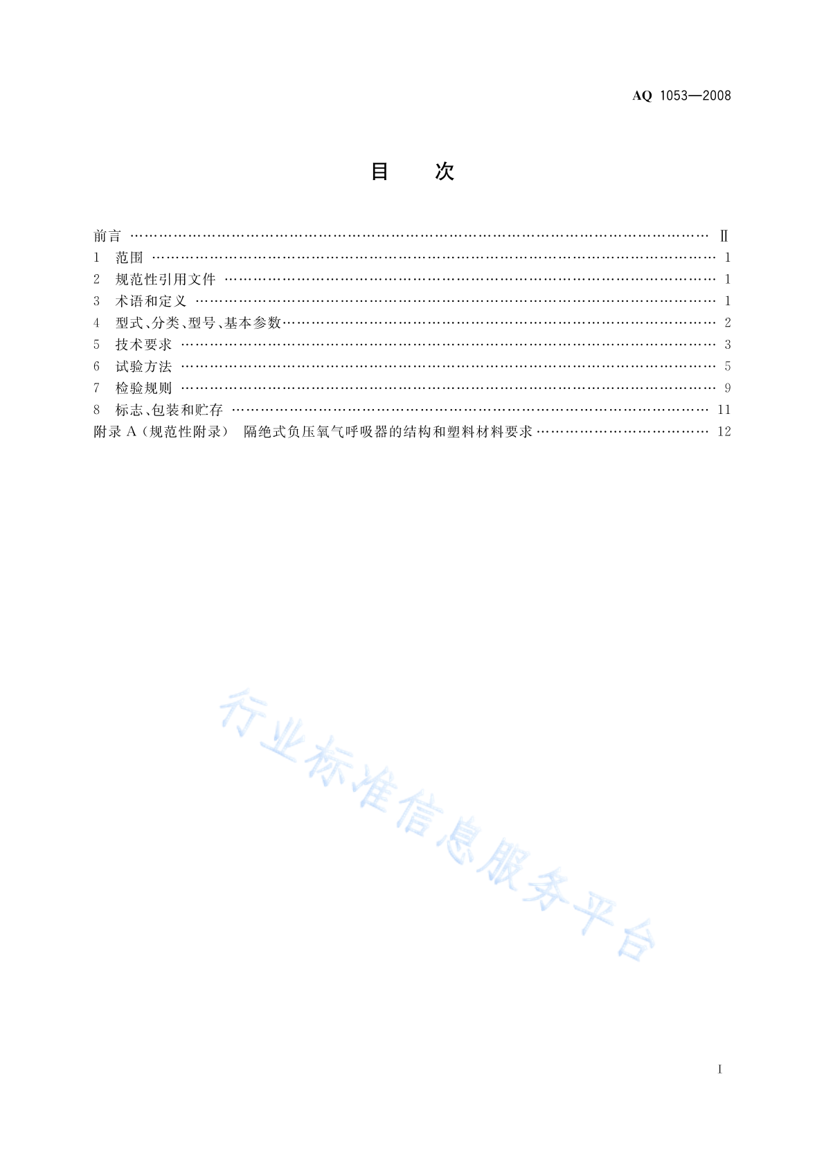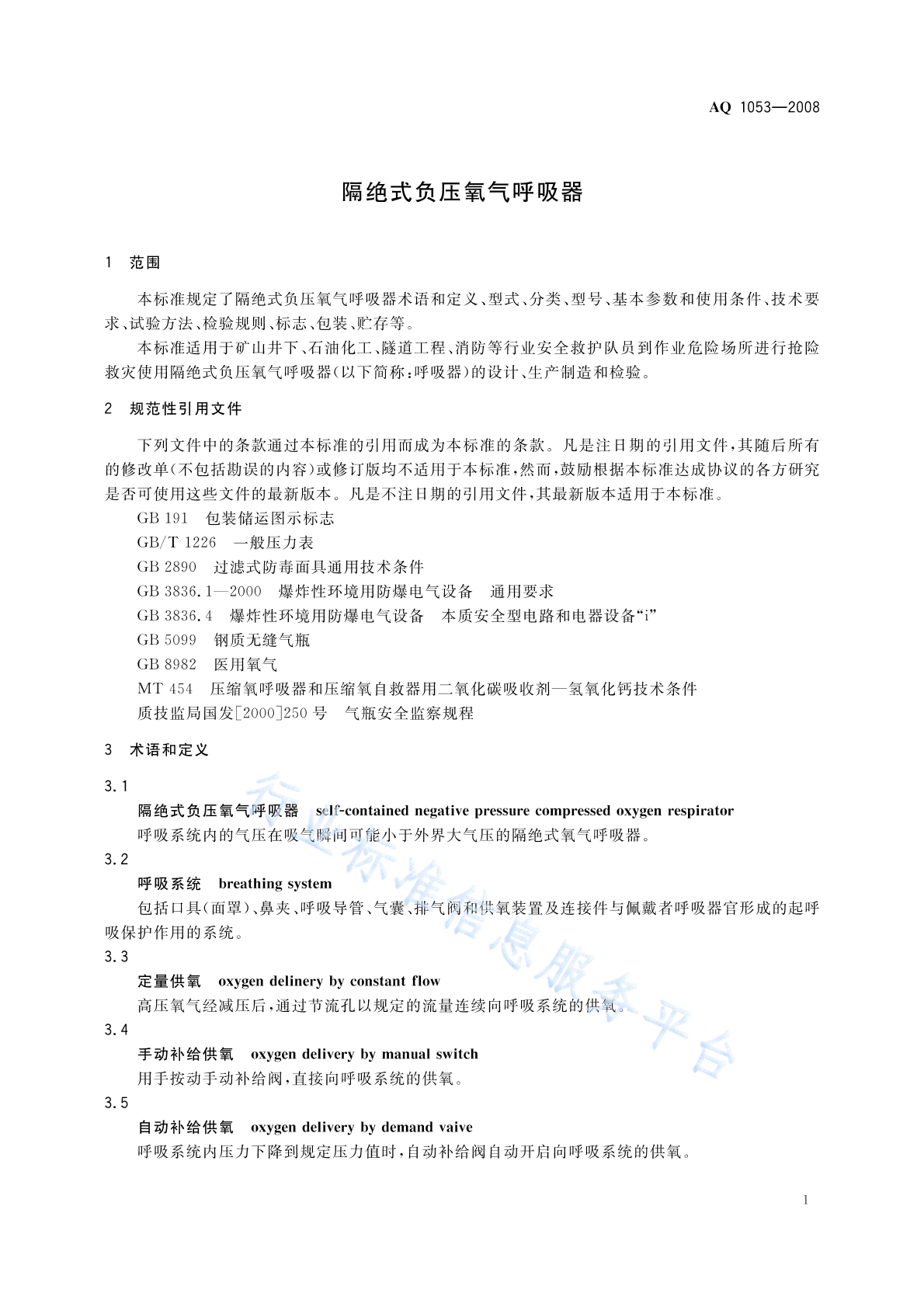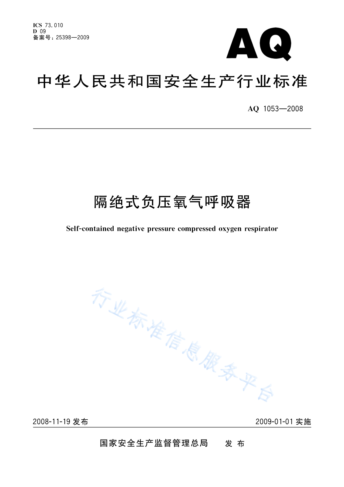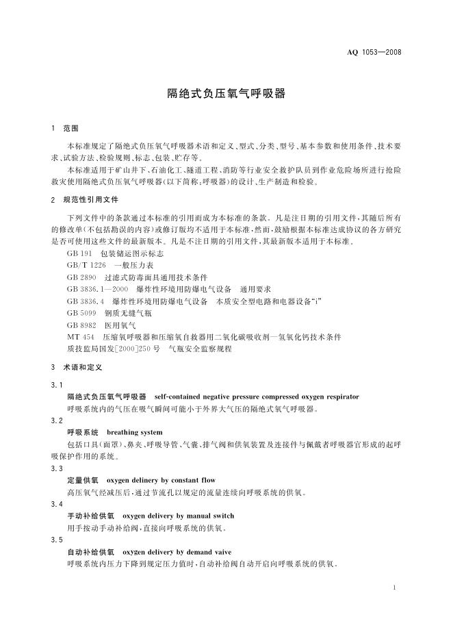 AQ 1053-2008 隔绝式负压氧气呼吸器