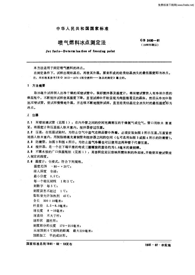 GB/T 2430-1981 喷气燃料冰点测定法