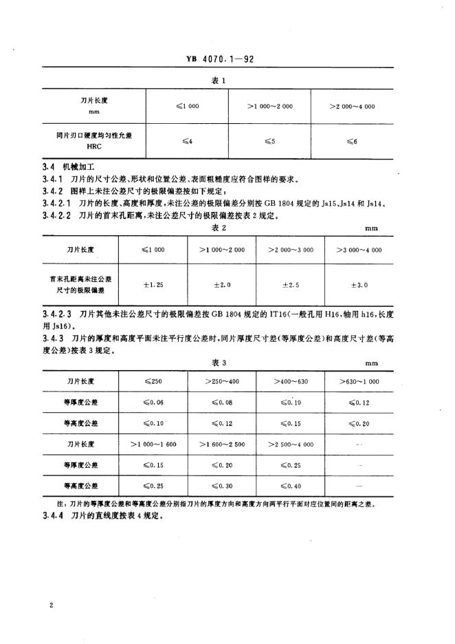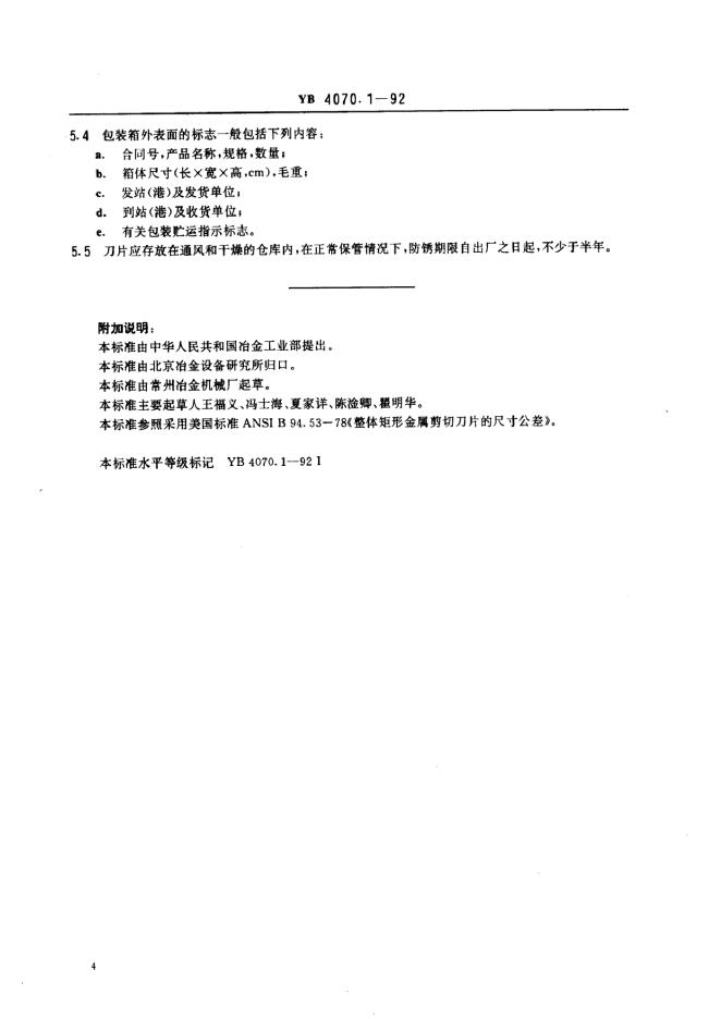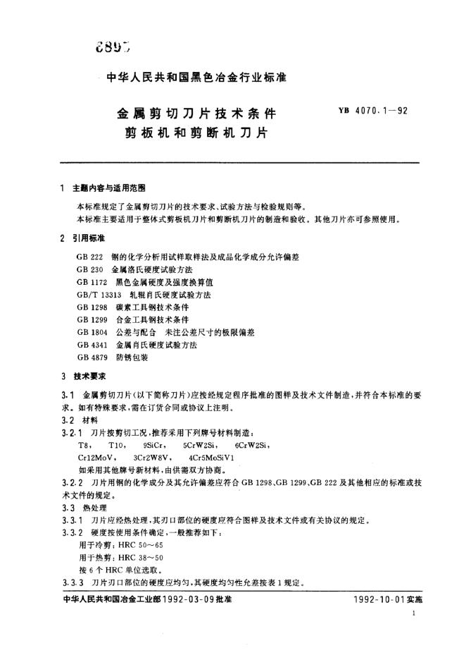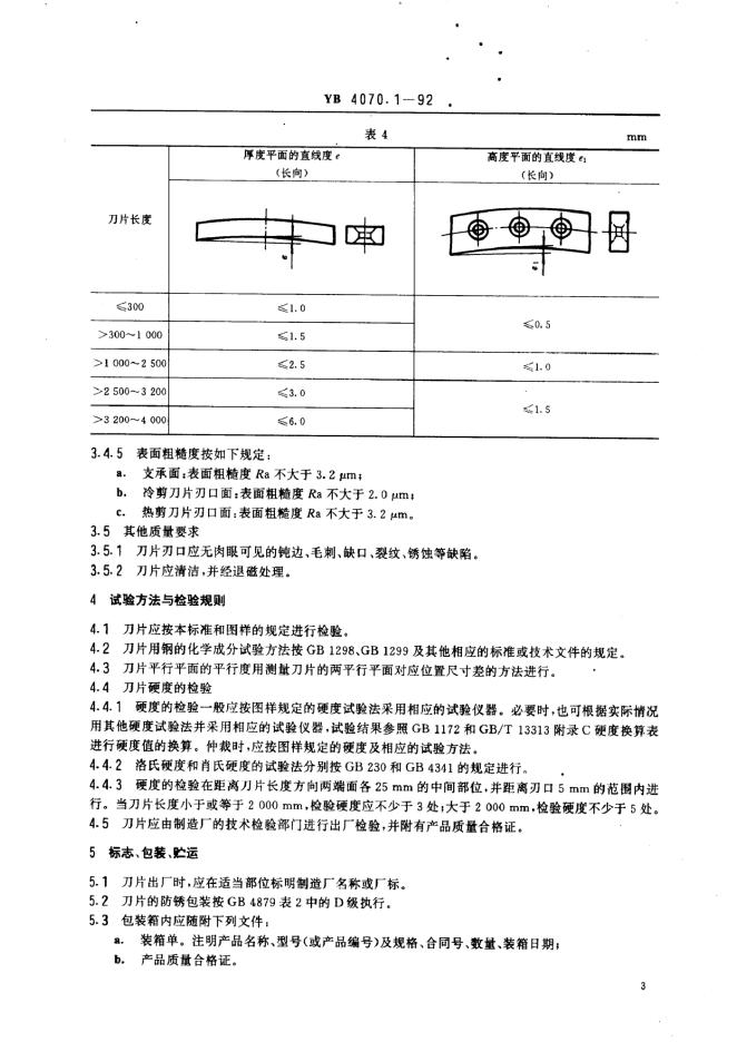 YB 4070-1991 金属剪切刀片技术条件