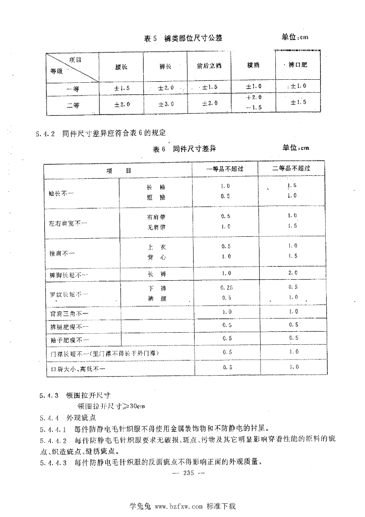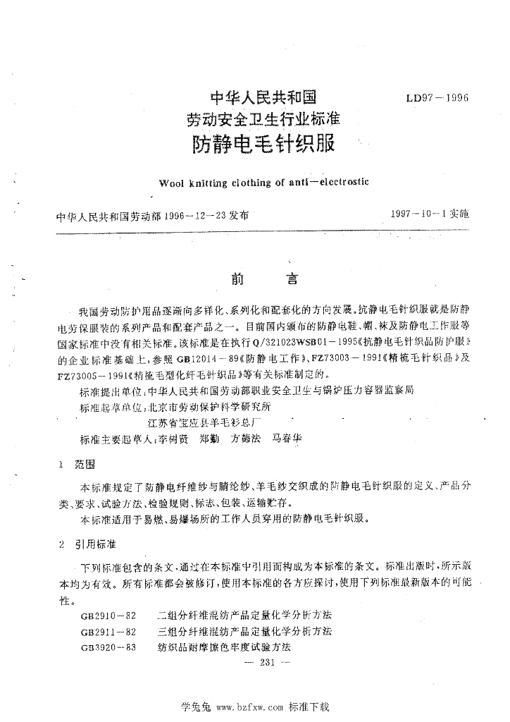 LD/T 97-1996 防静电毛针织服