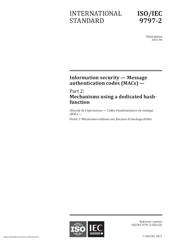 ISO/IEC 9797-2-2021 信息安全 消息验证码 第2部分:使用专用哈希函数的机制