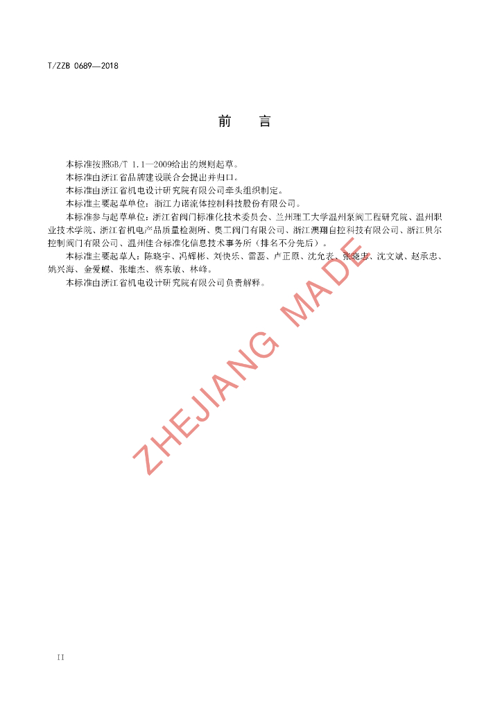 浙江力诺流体控制科技股份有限公司、浙江省阀门标准化技术委员会、兰州理工大学温州泵阀工程研究院、温州职业技术学院、浙江省机电产品质量检测所、奥工阀门有限公司、浙江澳翔自控科技有限公司、浙江贝尔控制阀门有限公司、温州佳合标准化信息技术事务所