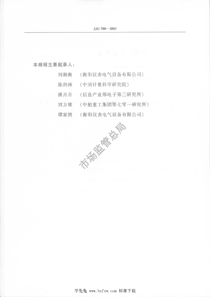 刘湘衡(衡阳仪表电气设备有限公司)、陈剑林(中国计量科学研究院)、潘月吾(信息产业部电子第三研究所)、刘方雄(中船重工集团第七零一研究所)、谭家腾(衡阳仪表电气设备有限公司)