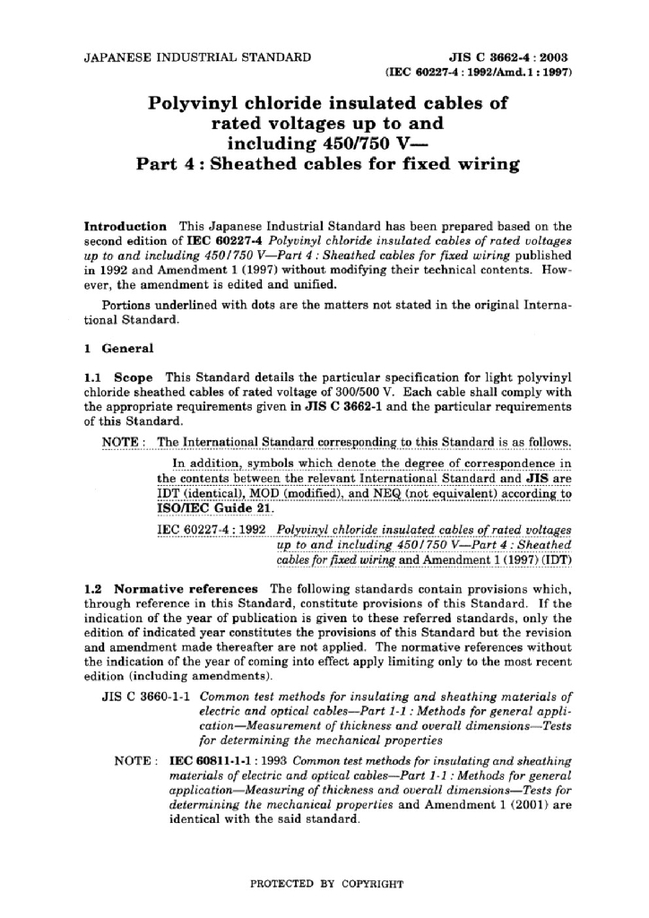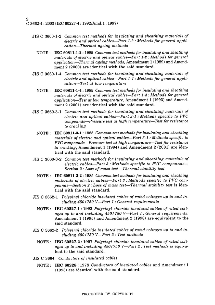 JIS C3662-4:2003 额定电压450/750V及以下聚氯乙烯绝缘电缆 第4部分 固定布线用护套电缆