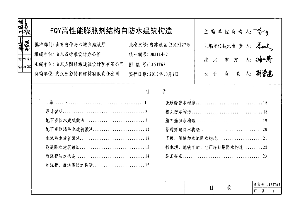L15JT63 FQY高性能膨胀剂结构自防水建筑构造图集