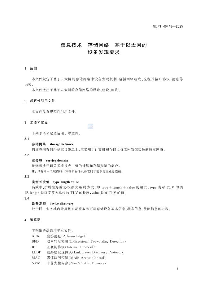 GB/T 46448-2025 信息技术 存储网络 基于以太网的设备发现要求