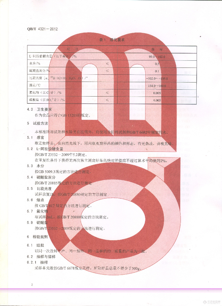 QB/T 4321-2012 L-阿拉伯糖