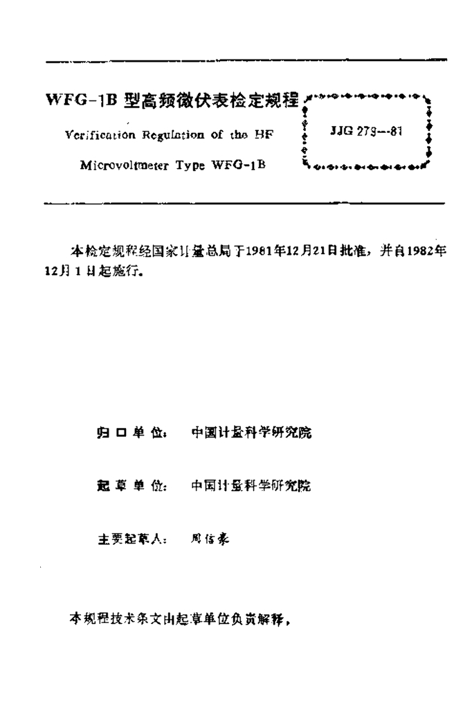 JJG 279-1981 WFG-1B型高频微伏表检定规程