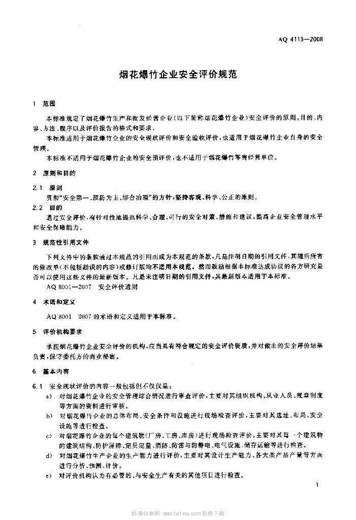 AQ 4113-2008 烟花爆竹企业安全评价规范