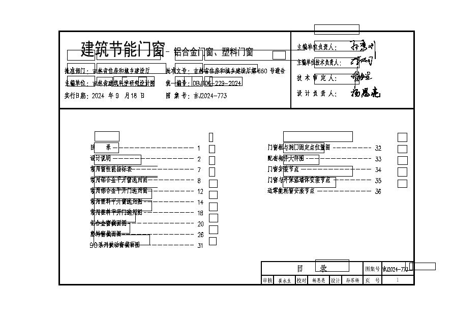 吉J2024-773 建筑节能门窗—铝合金门窗、塑料门窗图集