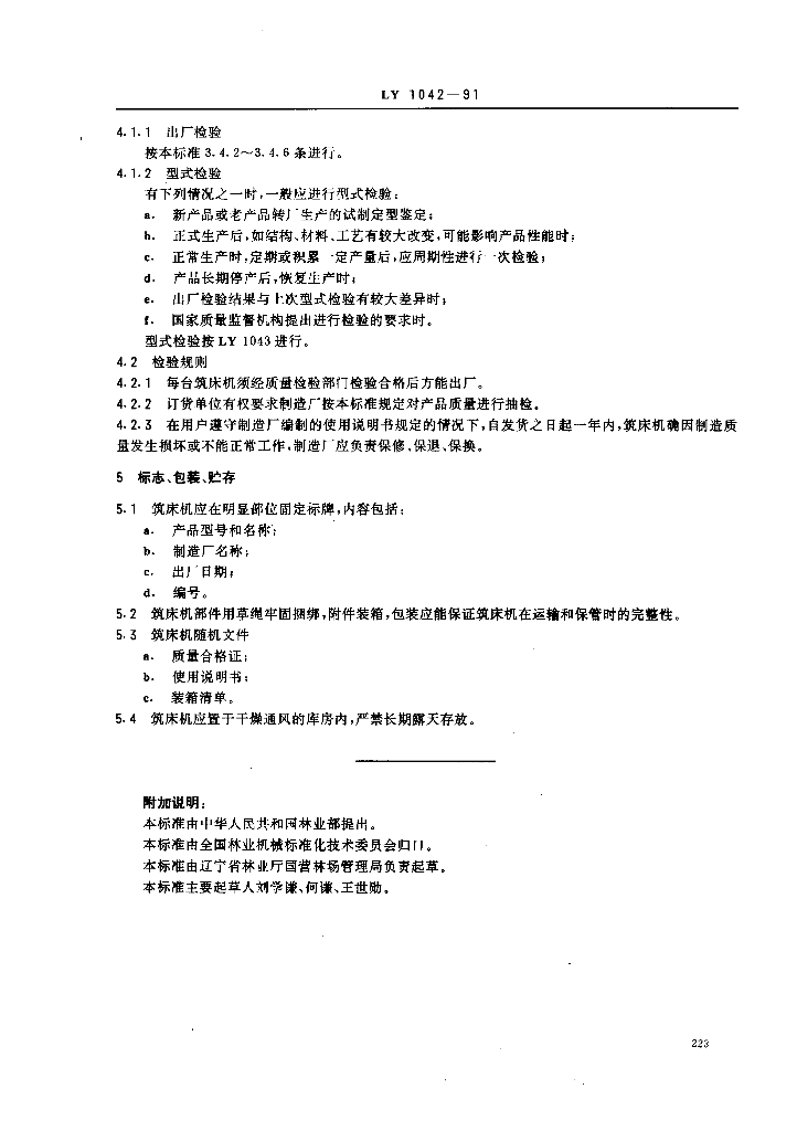 LY 1042-1991 筑床机技术条件
