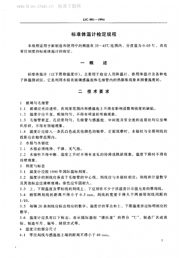 JJG 881-1994 标准体温计