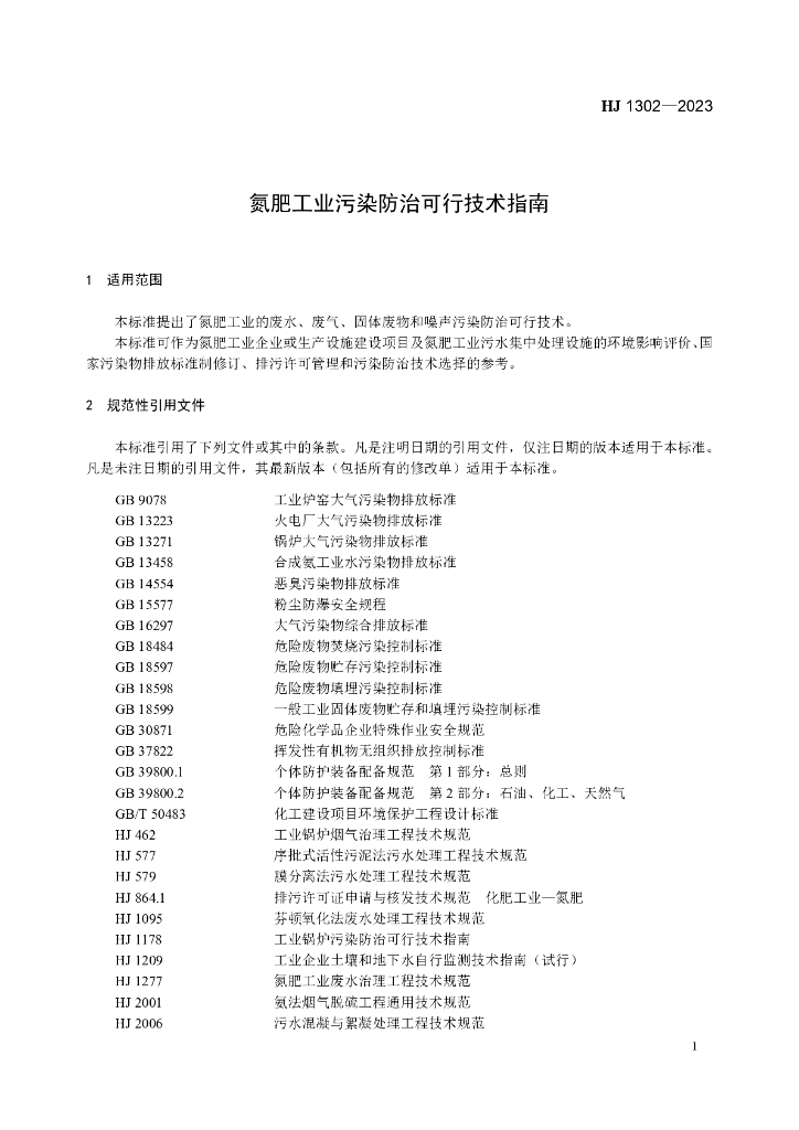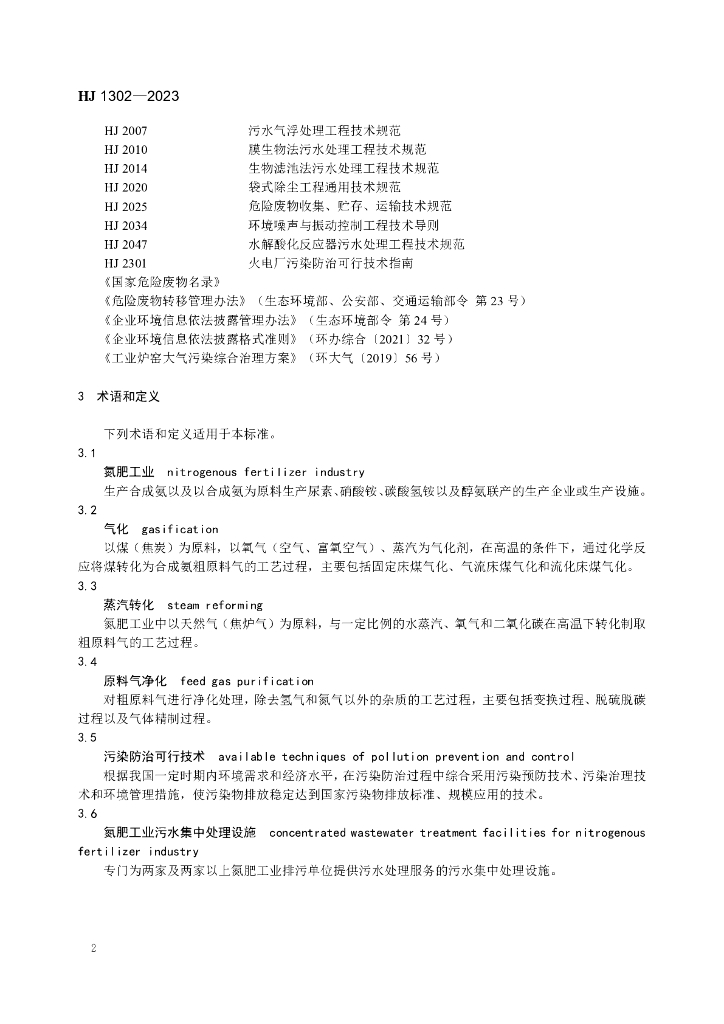 HJ 1302-2023 氮肥工业污染防治可行技术指南