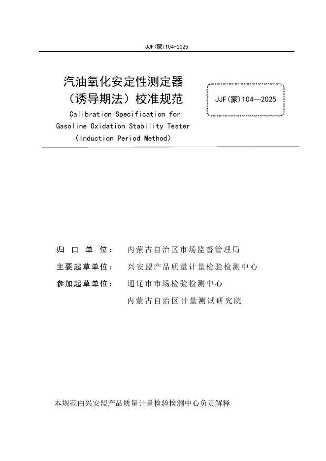 JJF(蒙)104-2025 汽油氧化安定性测定器(诱导期法)校准规范