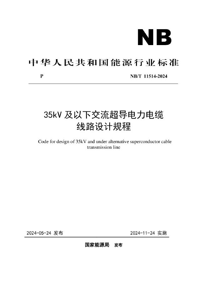 NB/T 11514-2024 35kV 及以下交流超导电力电缆线路设计规程(附条文说明)