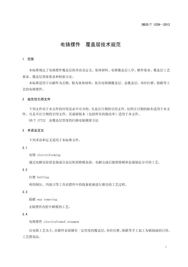 DB35/T 1259-2012 电铸摆件 覆盖层技术规范