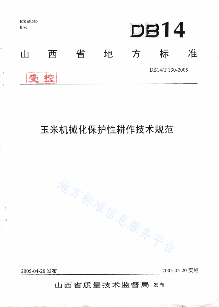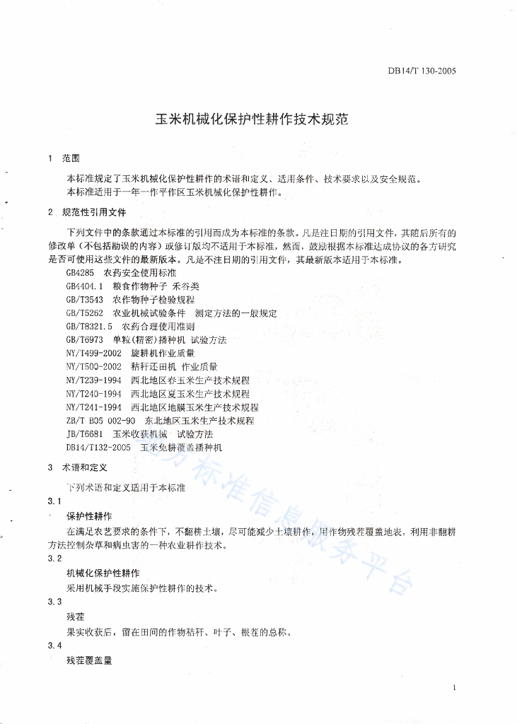 DB14/T 130-2005 玉米机械化保护性耕作技术规程