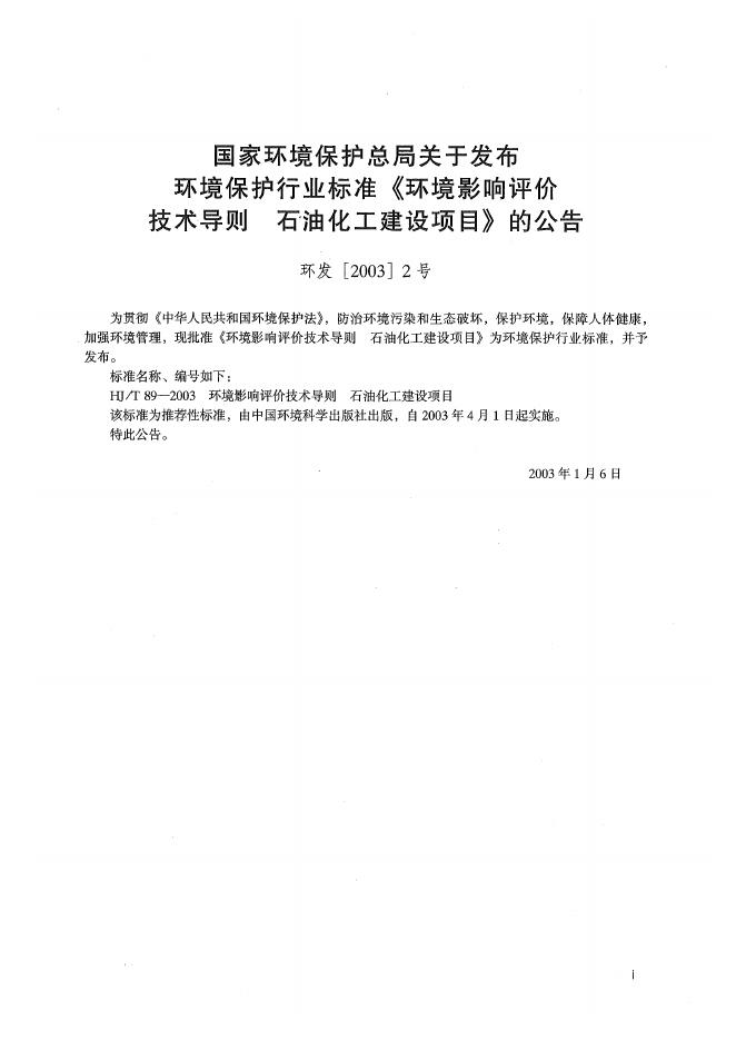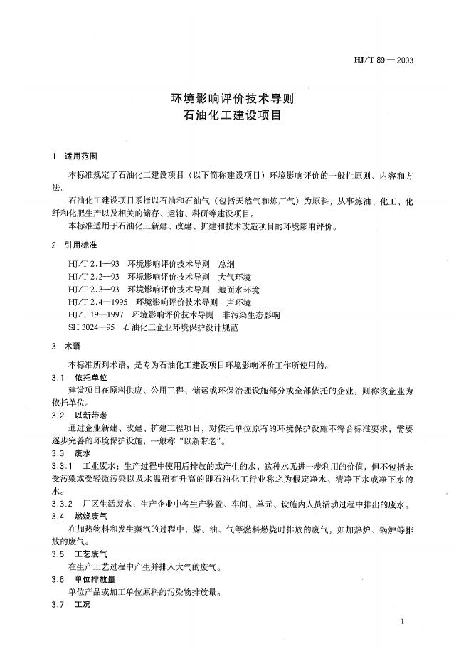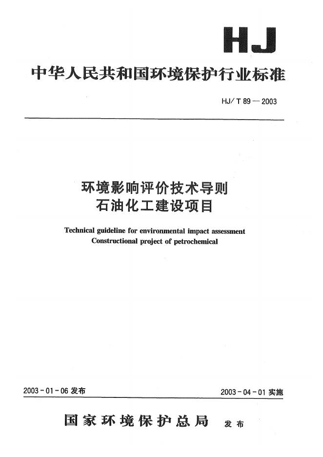 HJ/T 89-2003 环境影响评价技术导则 石油化工建设项目