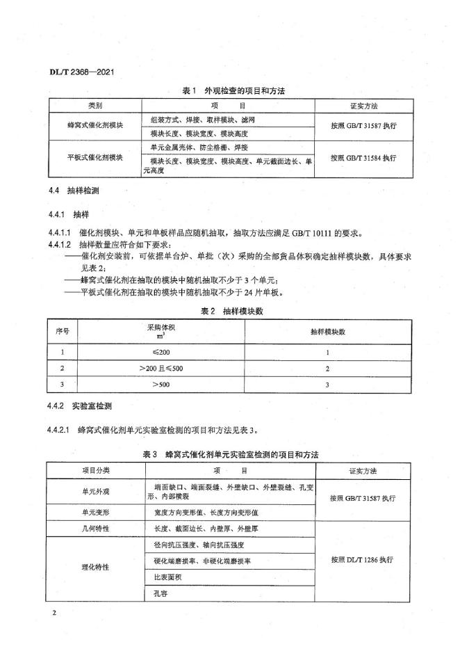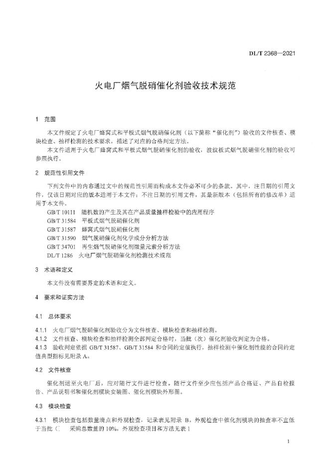 DL/T 2368-2021 火电厂烟气脱硝催化剂验收技术规范