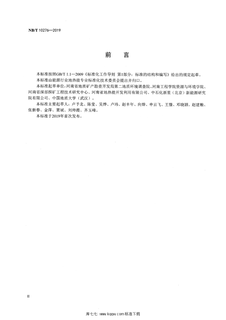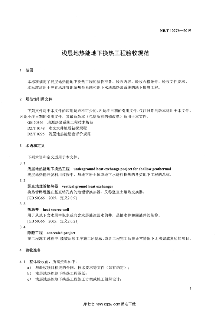 NB/T 10276-2019 浅层地热能地下换热工程验收规范