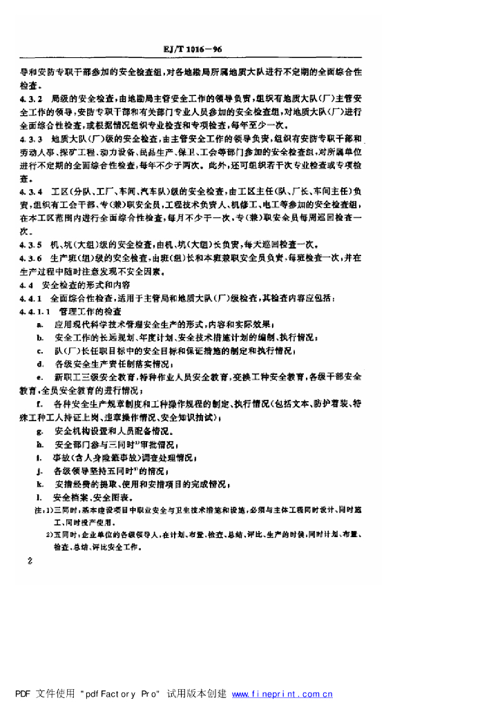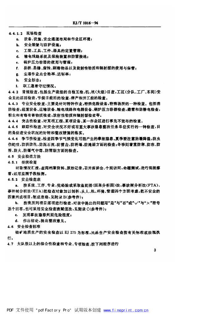 EJ/T 1016-1996 铀矿地质生产安全检查规程