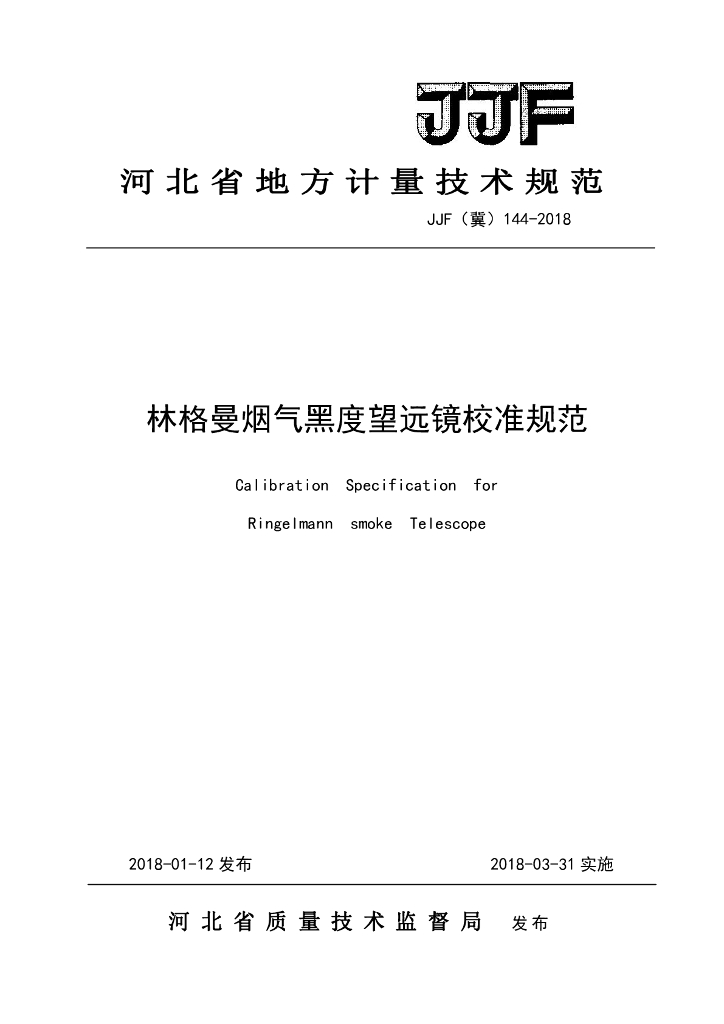 JJF(冀)144-2018 林格曼烟气黑度望远镜校准规范