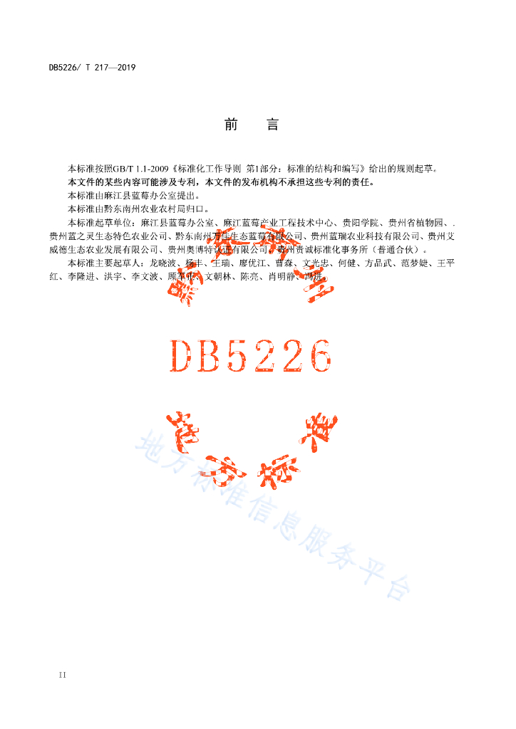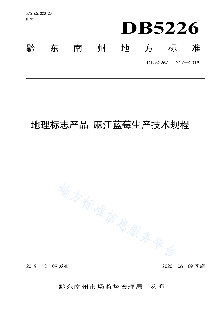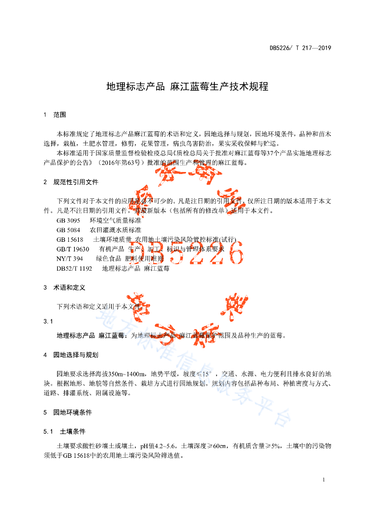 DB5226/T 217-2019 地理标志产品 麻江蓝莓生产技术规程
