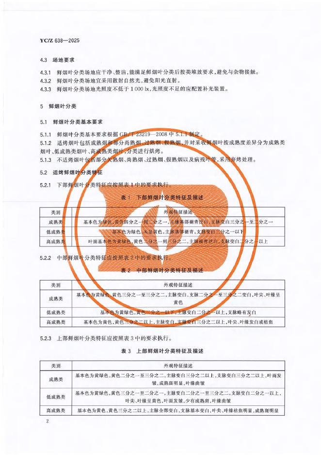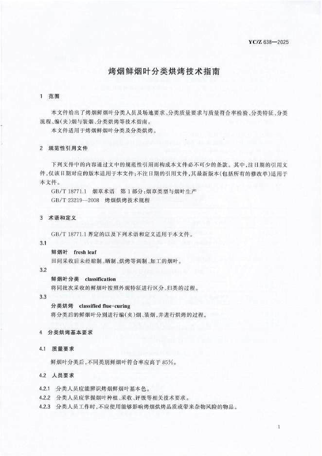YC/Z 638-2025 烤烟鲜烟叶分类烘烤技术指南