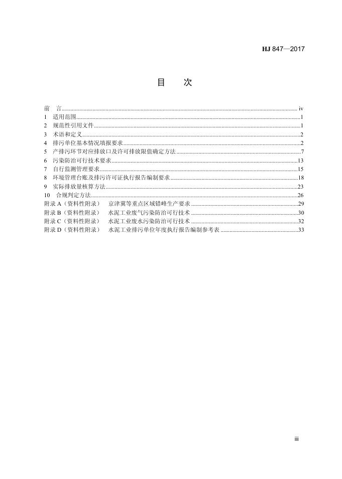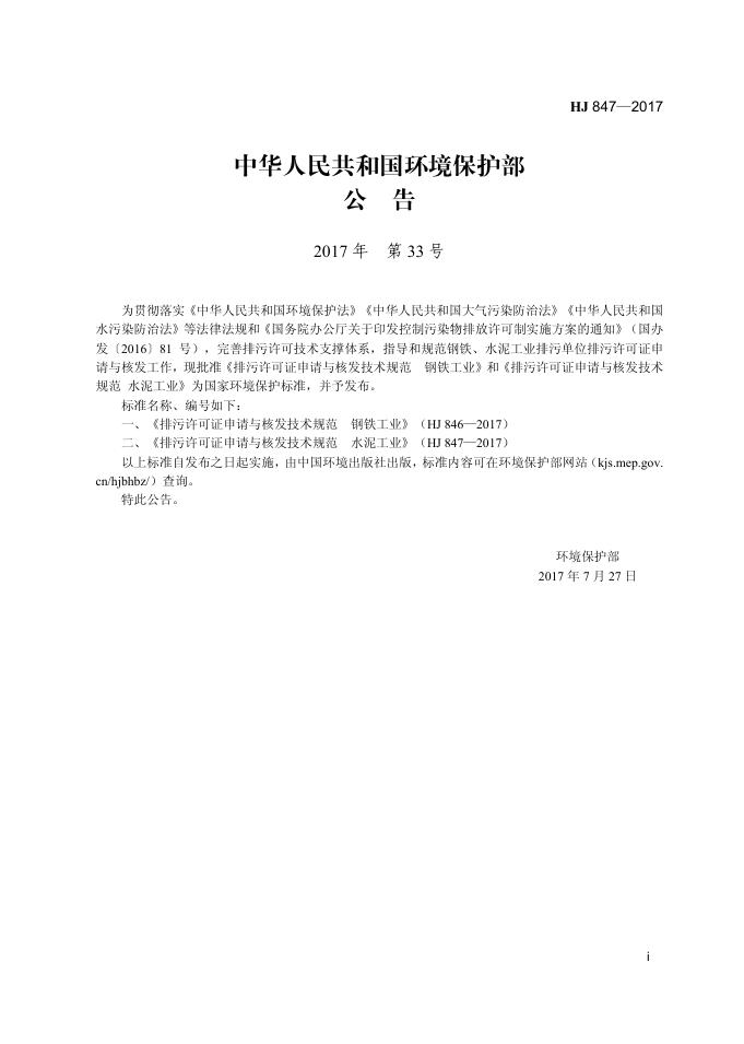 HJ 847-2017 排污许可证申请与核发技术规范 水泥工业