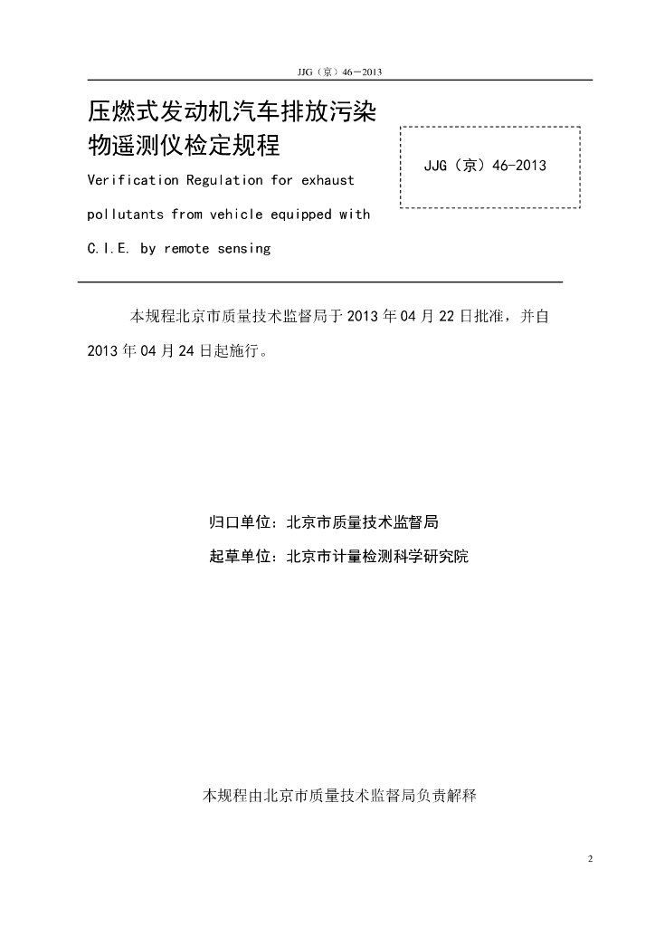 JJG(京)46-2013 压燃式发动机汽车排放污染物遥测仪检定规程