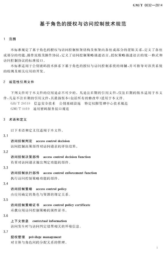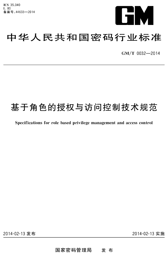 GM/T 0032-2014 基于角色的授权与访问控制技术规范