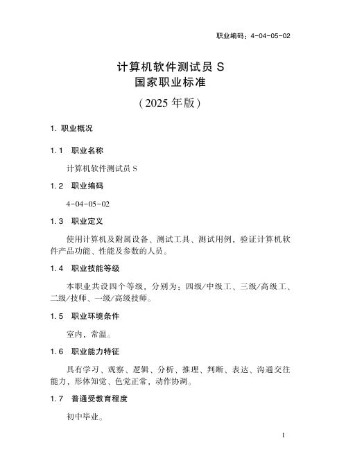 GZB 4-04-05-02 计算机软件测试员S国家职业技能标准(2025年版)
