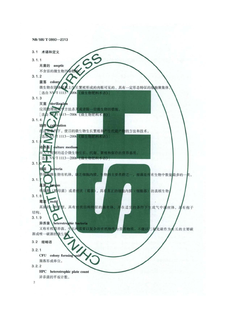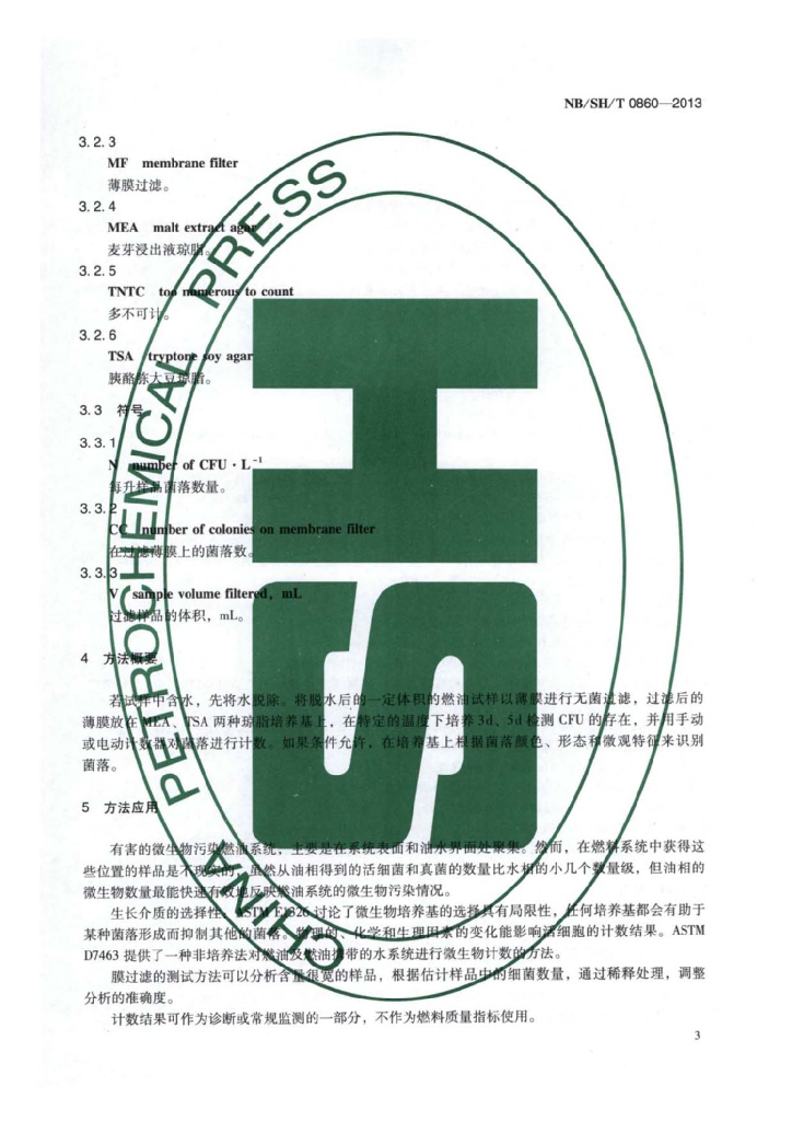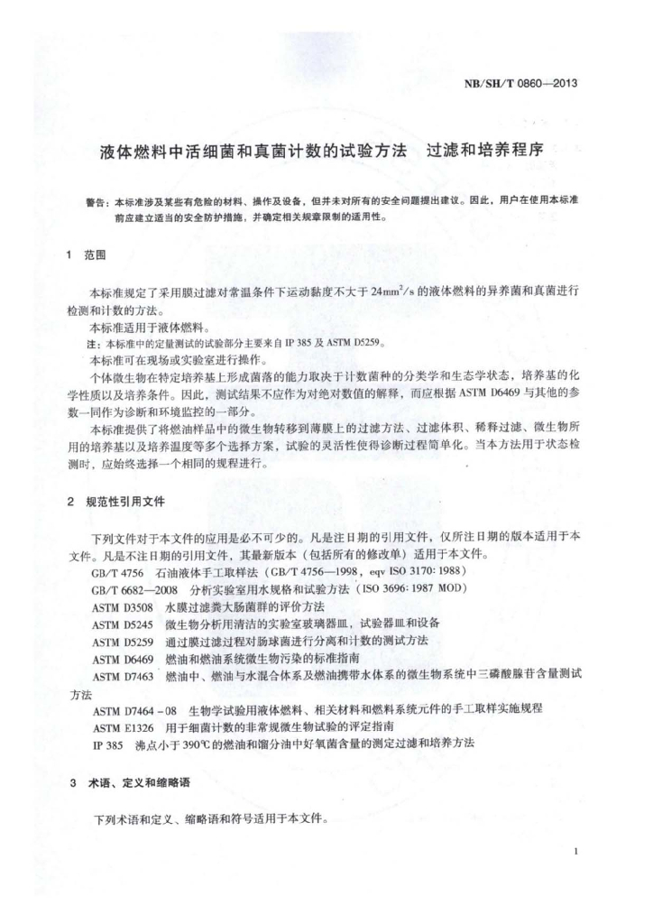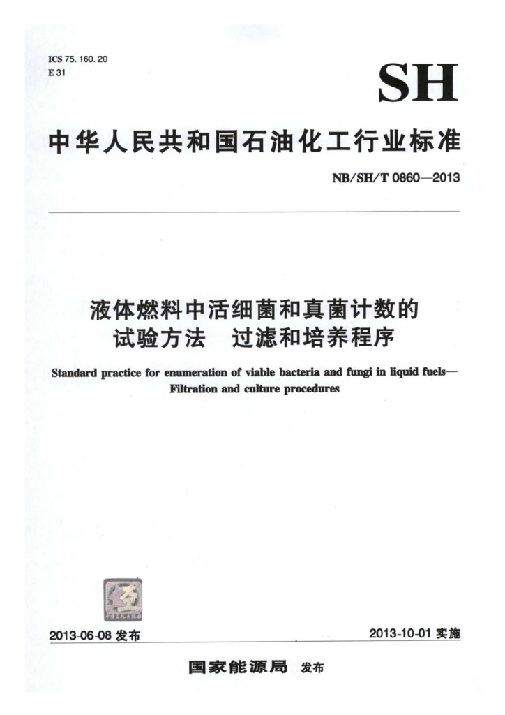 NB/SH/T 0860-2013 液体燃料中活细菌和真菌计数的试验方法过滤和培养程序