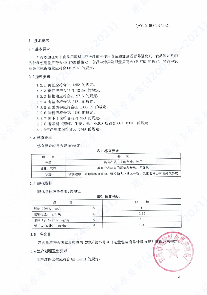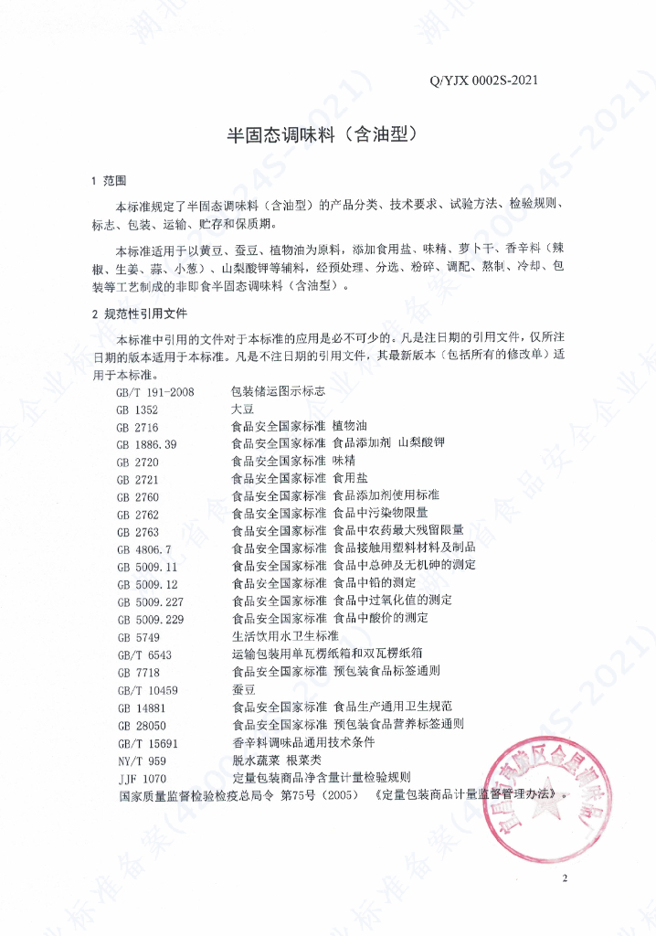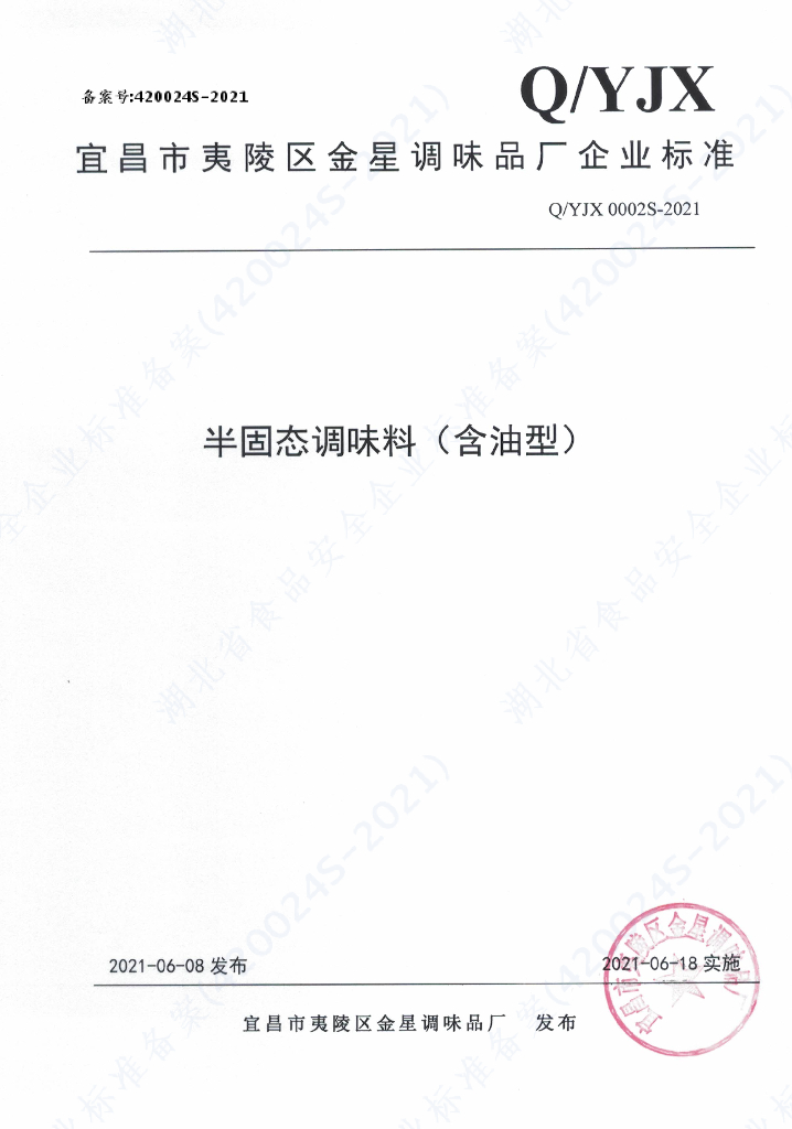 Q/YJX 0002S-2021 半固态调味料(含油型)