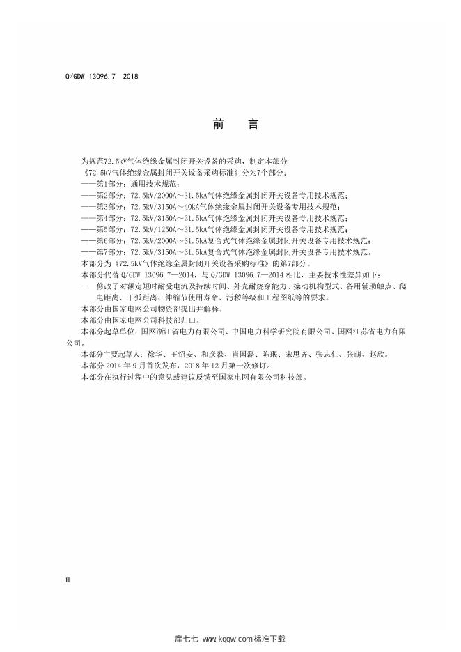 Q/GDW 13096.7-2018 72.5kV气体绝缘金属封闭开关设备采购标准 第7部分:72.5kV 3150A~31.5kA复合式气体绝缘金属封闭开关设备专用技术规范