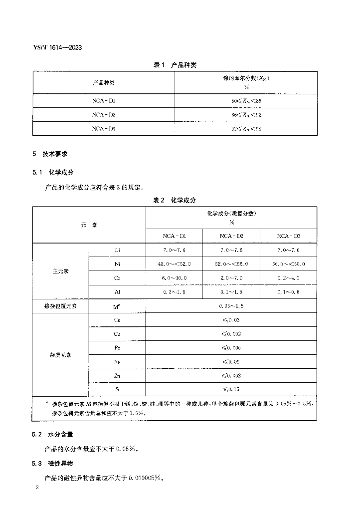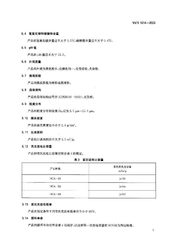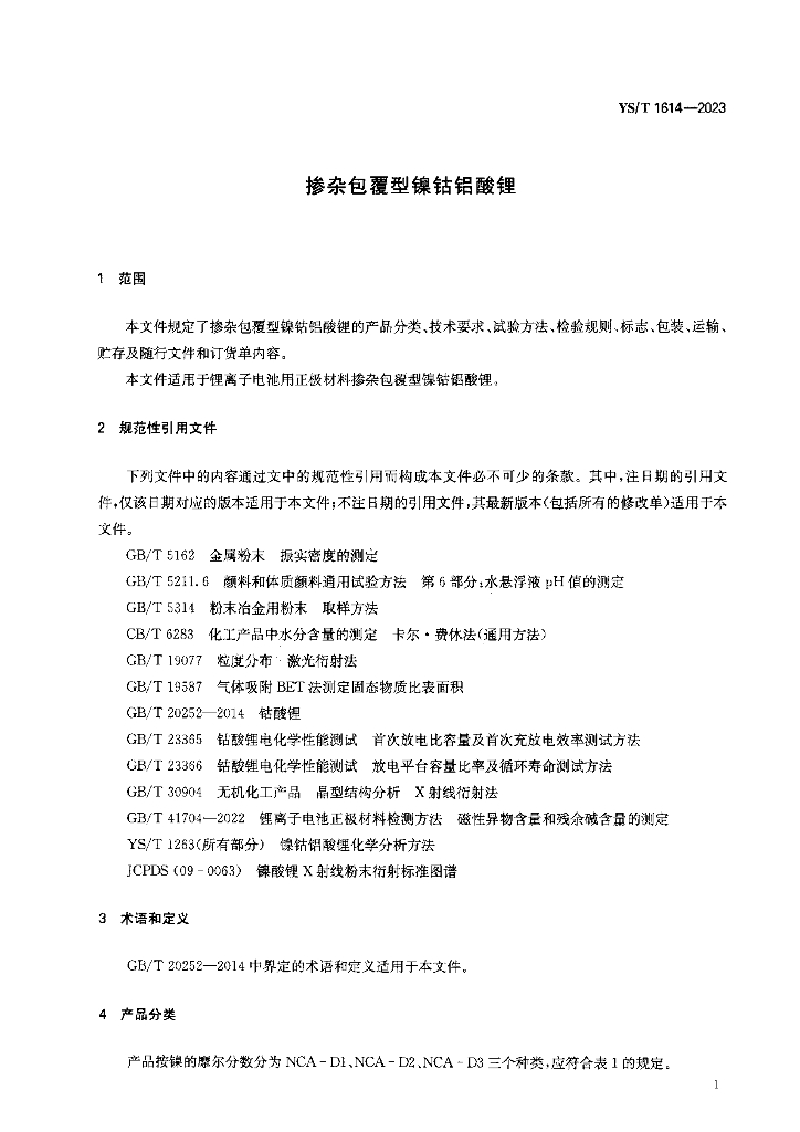 YS/T 1614-2023 掺杂包覆型镍钴铝酸锂