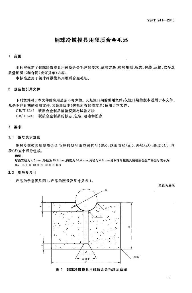 YS/T 241-2013 钢球冷镦模具用硬质合金毛坯