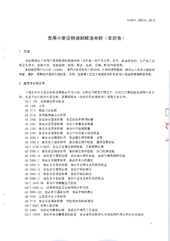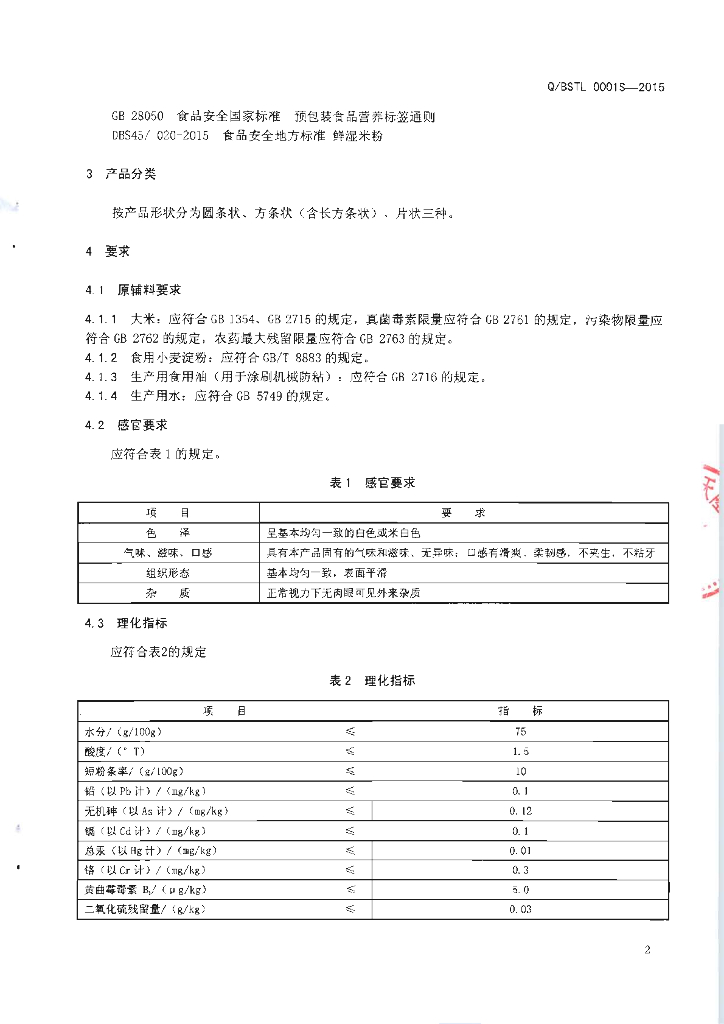Q/BSTL 0001S-2015 百色市右江区天隆米粉厂 食用小麦淀粉调制鲜湿米粉(非即食)