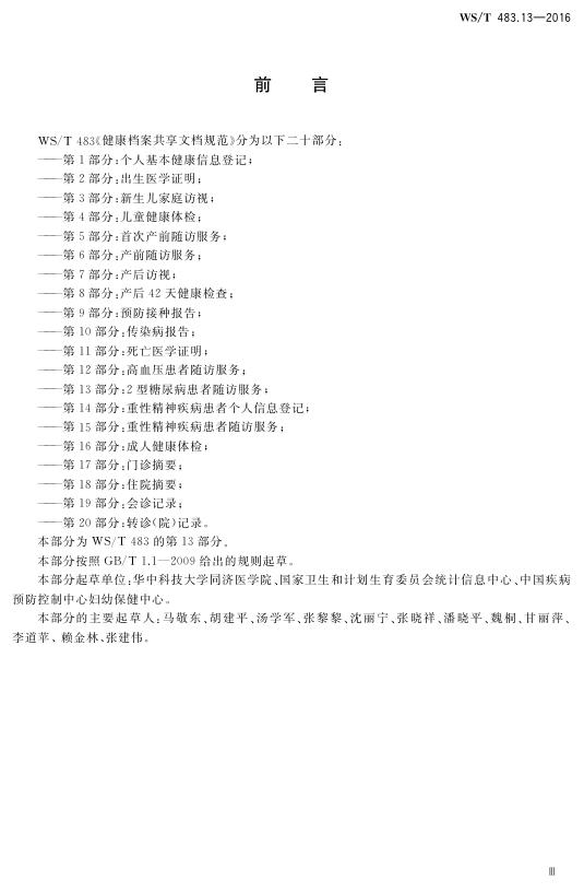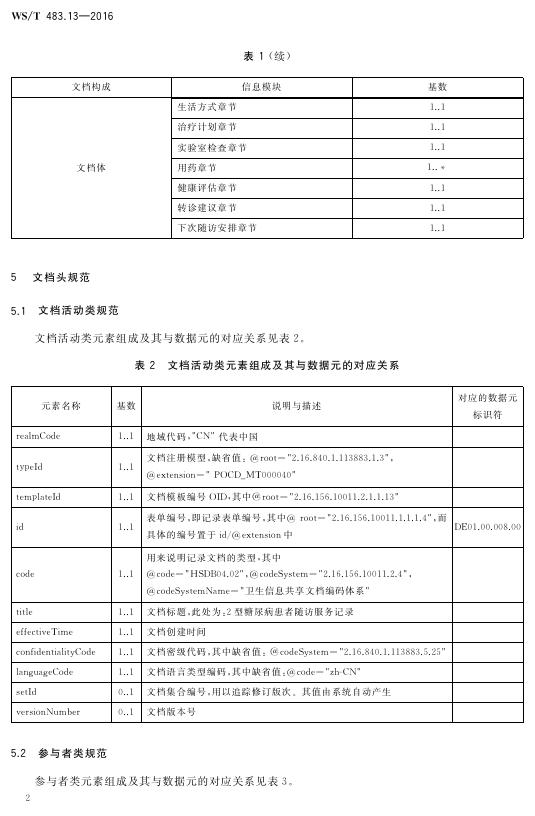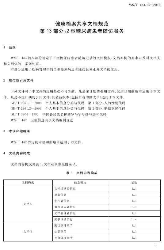 WS/T 483.13-2016 健康档案共享文档规范 第13部分:2型糖尿病患者随访服务